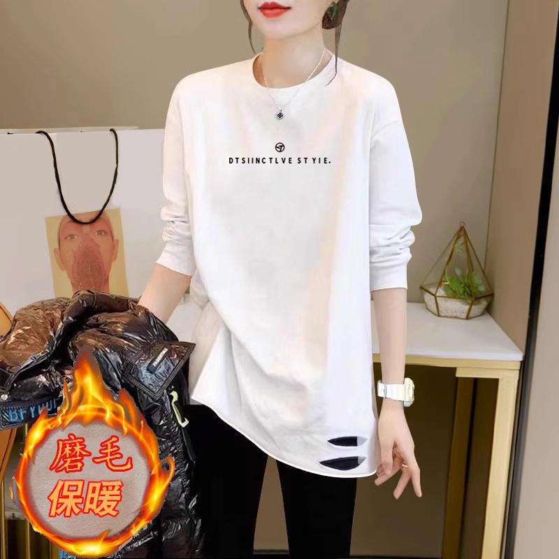 春秋冬季中长款遮屁股打底衫女宽松叠穿卫衣内搭纯棉大白t恤上衣