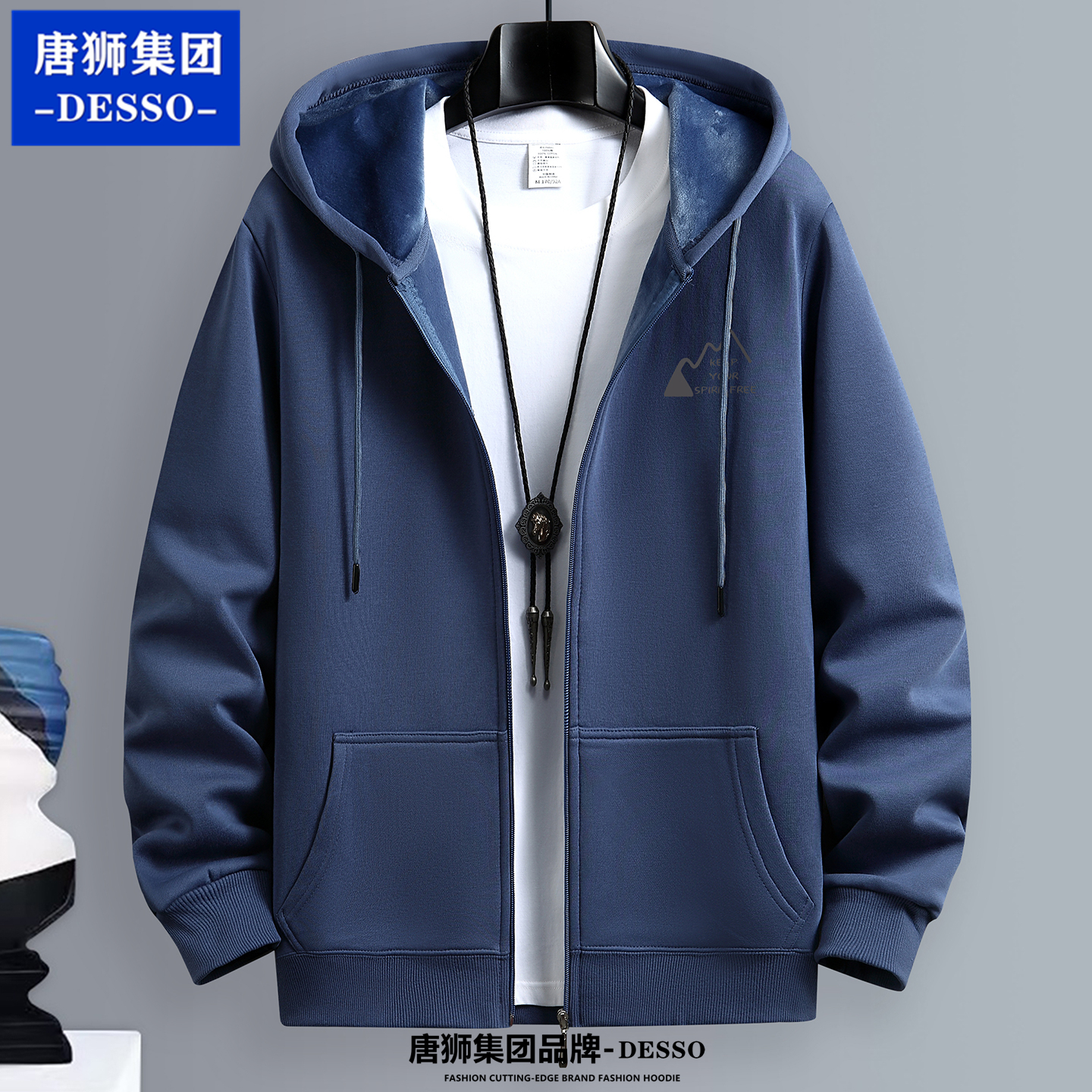 唐狮集团DESSO开衫卫衣男款春秋季男生秋冬加绒上衣男士连帽外套