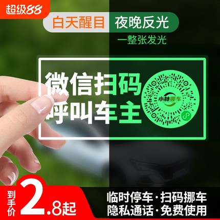 车载夜光临时停车牌挪车二维码静电贴移车扫码牌智能创意号码隐私