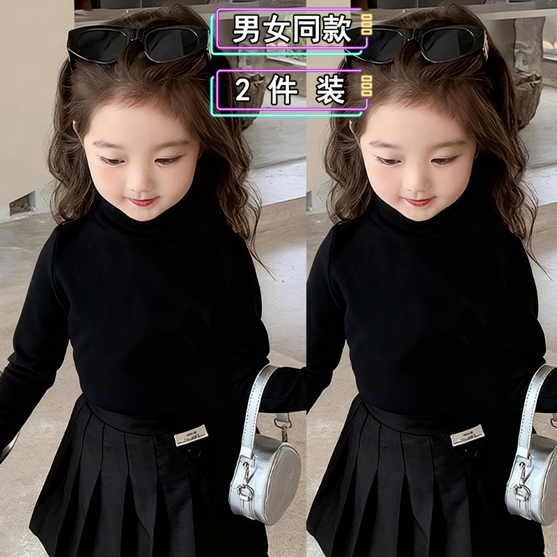 儿童德绒保暖上衣半高领纯色秋冬装男女中大童长袖T恤加绒打底衫