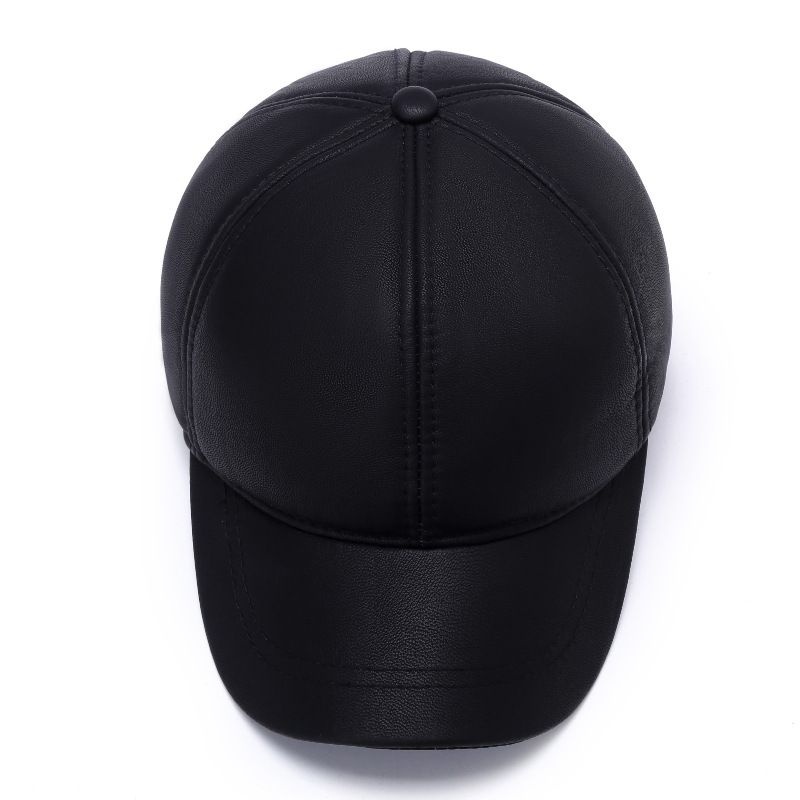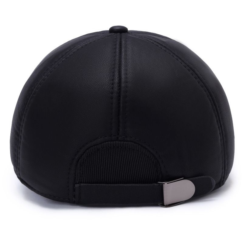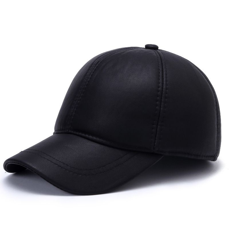 新款仿皮棉帽男士休闲款棒球皮帽中老年冬季保暖护耳加绒鸭舌帽子
