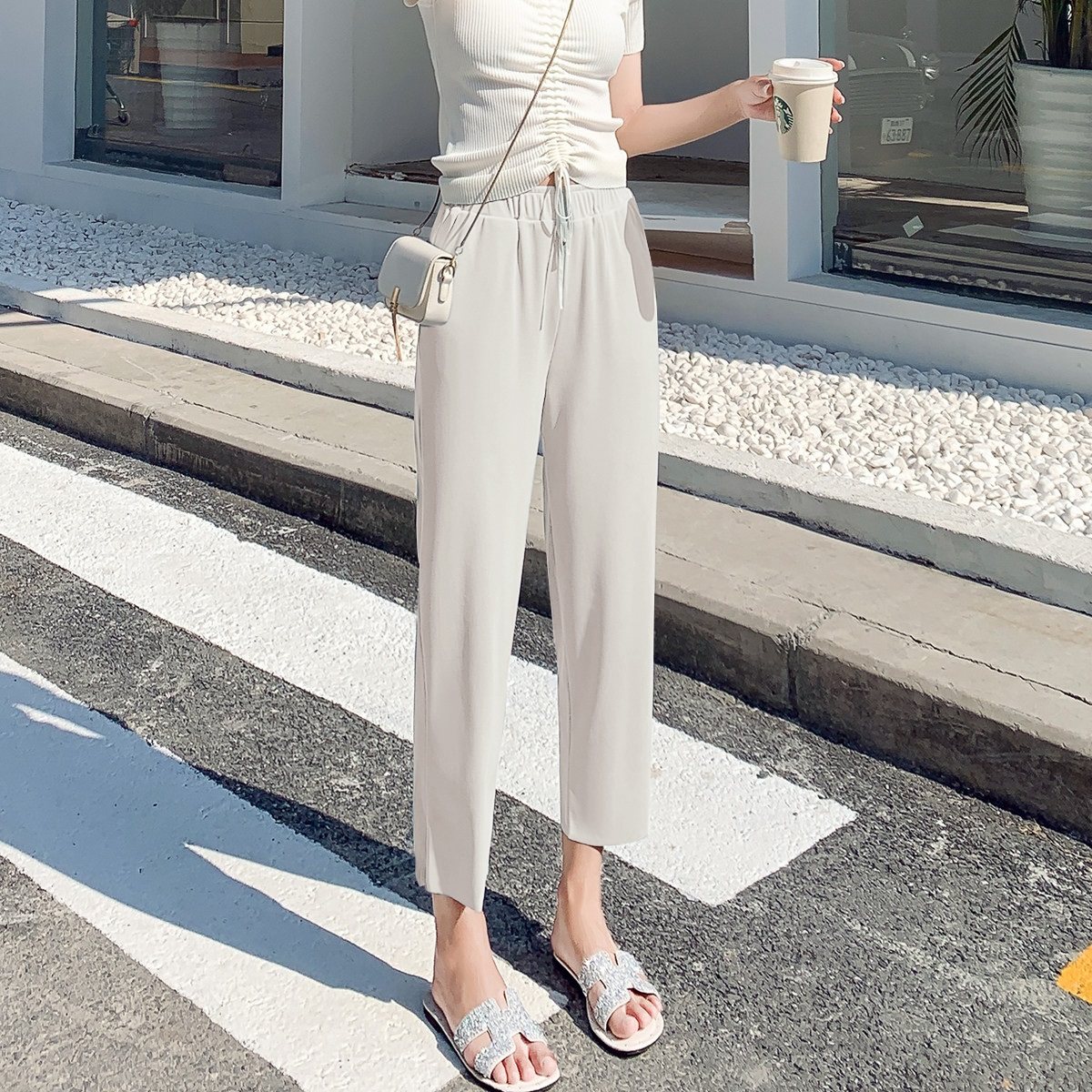 直筒裤女春夏季休闲新薄款七分冰丝垂感宽松阔腿奶奶九分萝卜裤子
