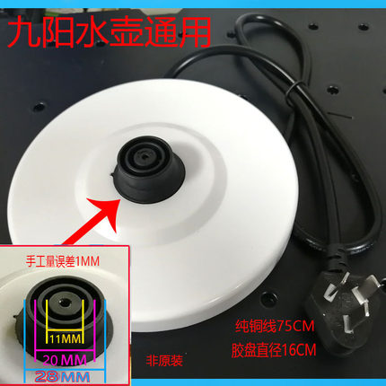 九阳电热水壶通用底座电烧开水煲电源座双圈白色胶盘带线