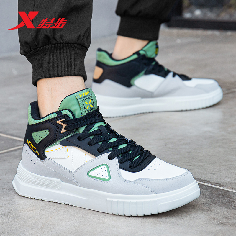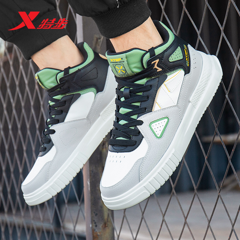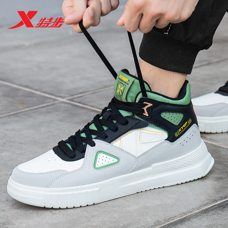 特步板鞋男鞋2025秋季新款高帮休闲鞋子空军一号皮面轻便运动鞋男
