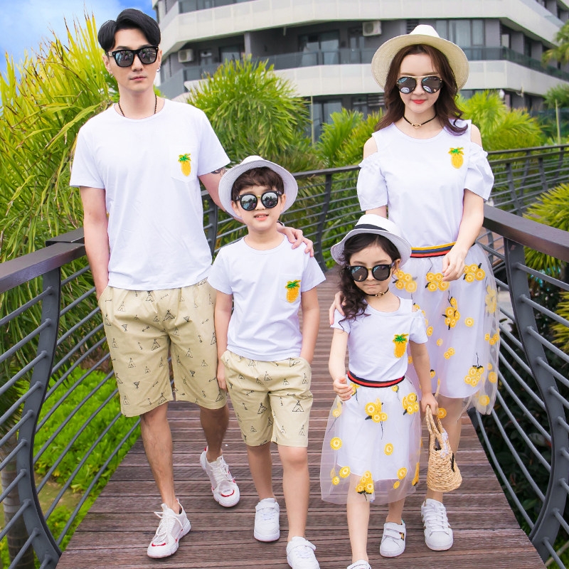 亲子装夏装2021新款潮全家装洋气母子母女连衣裙一家三口四口套装