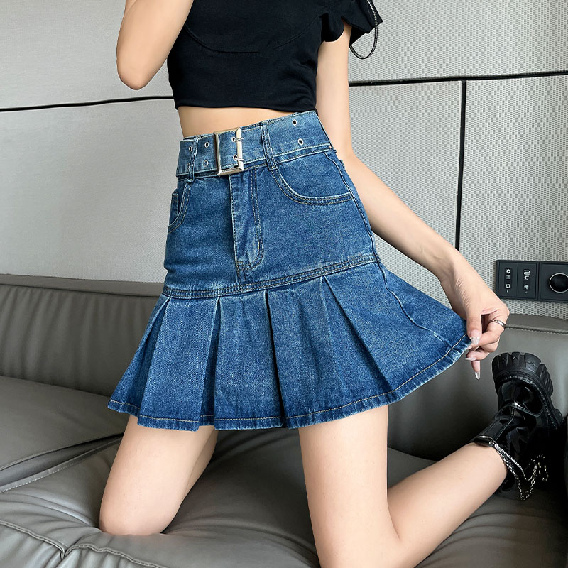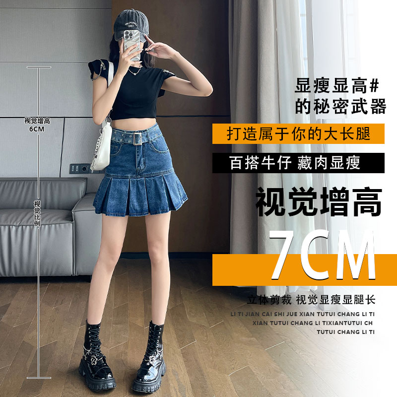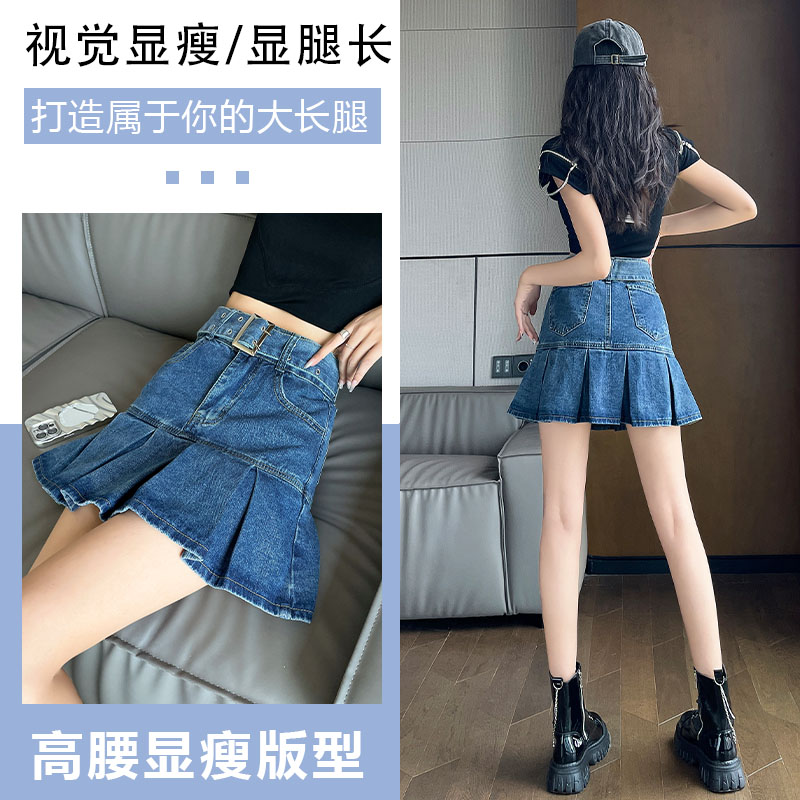 牛仔短裤裙女夏2023年新款薄款时髦辣妹复古高腰宽松显瘦a字裙子