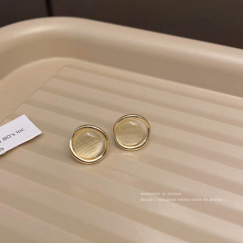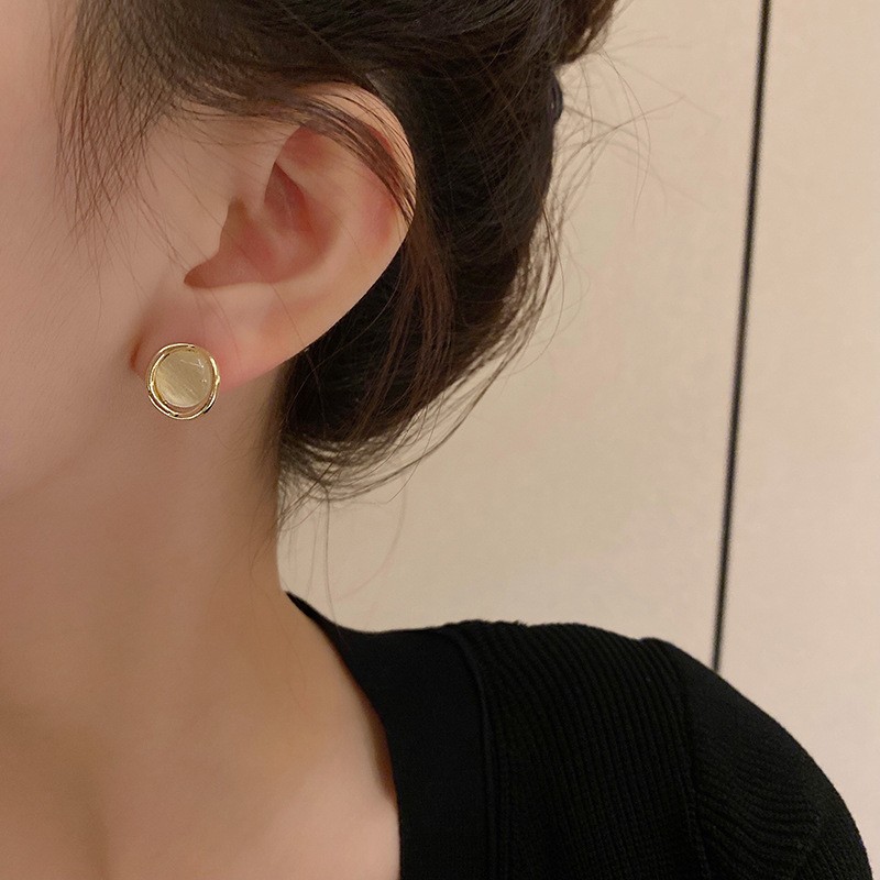 925银针简约猫眼石圆圈耳钉女ins冷淡风新款高级感耳饰品网红耳环