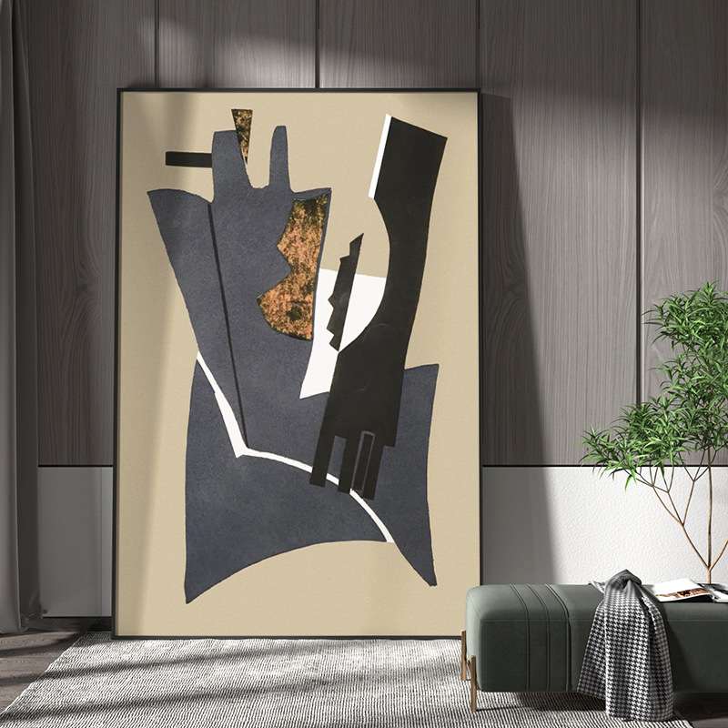 北欧抽象客厅玄关装饰画黑色轻奢艺术组合现代办公室墙壁竖版挂画