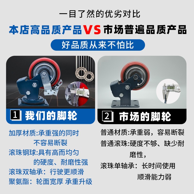 弹簧万向轮减震脚轮4568寸白色红色聚氨酯刹车牵引轮子台车减震轮