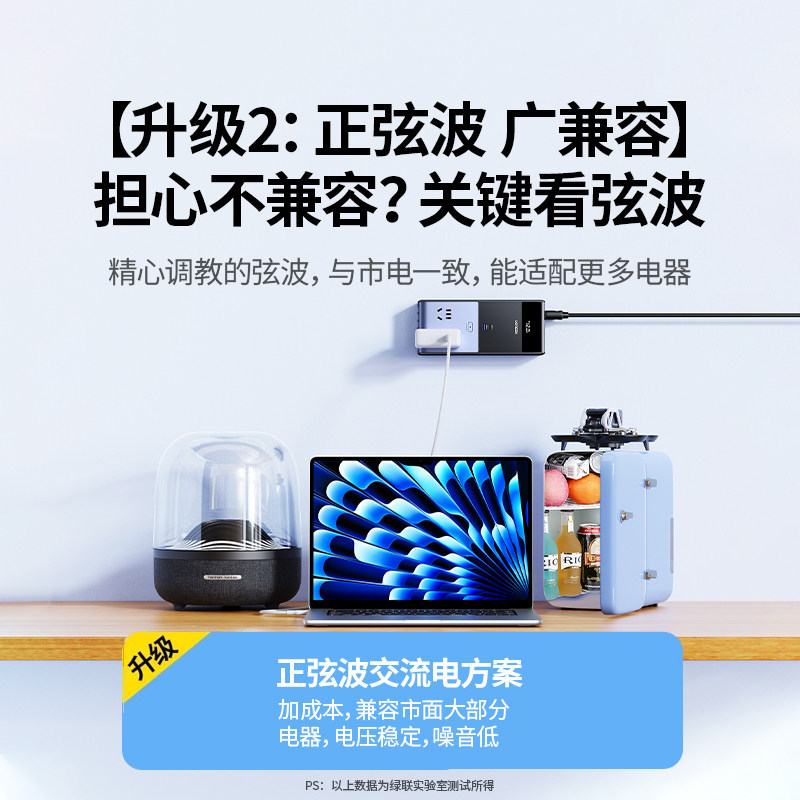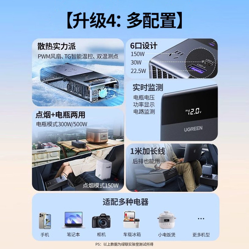 绿联车载逆变转换器12V转220伏汽车大功率快充变压插座车用充电器