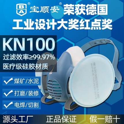 宝顺安KN100防尘口罩工业粉尘高效煤矿山井下电焊工打磨硅胶面罩
