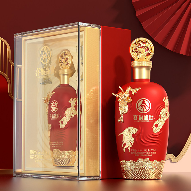 五粮液股份出品 喜福盛世祥瑞 浓香型白酒 52度 500ml*6瓶整箱装