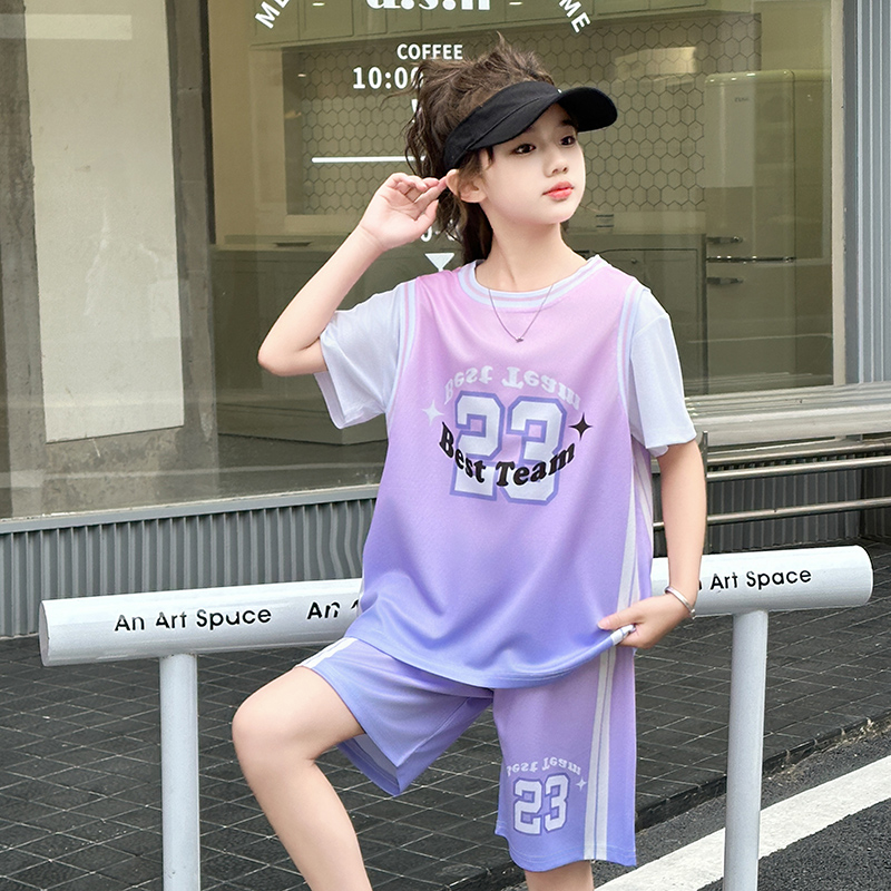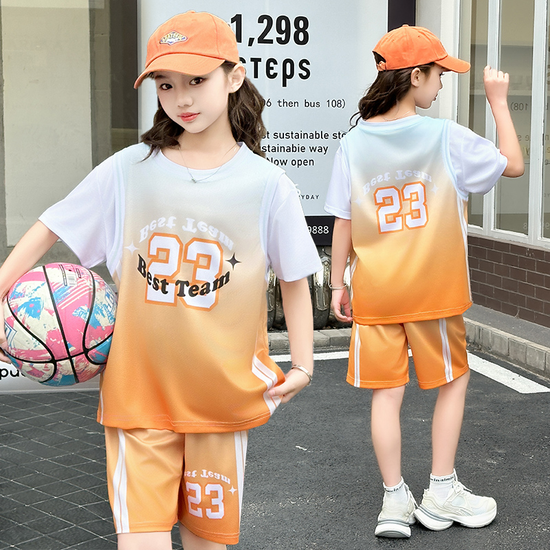 儿童夏季女童篮球服套装23号短袖球衣中大童速干运动服假两件童装