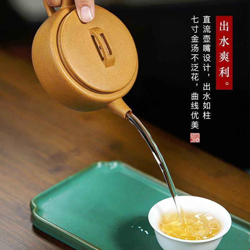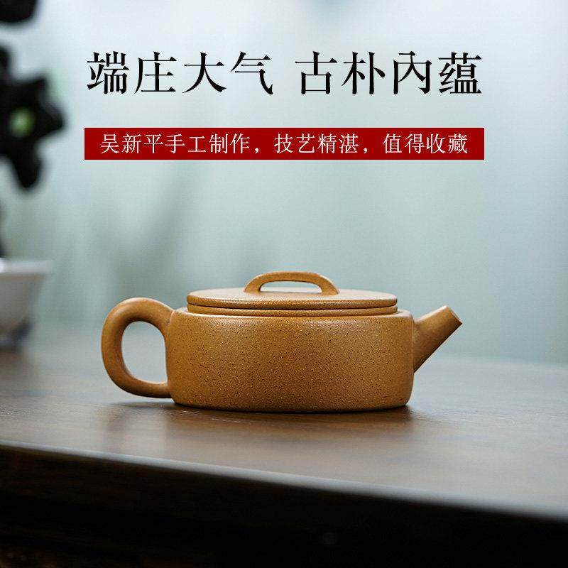 名壶秋月宜兴紫砂壶原矿金黄段泥名家吴新平纯全手工制作汉瓦茶壶