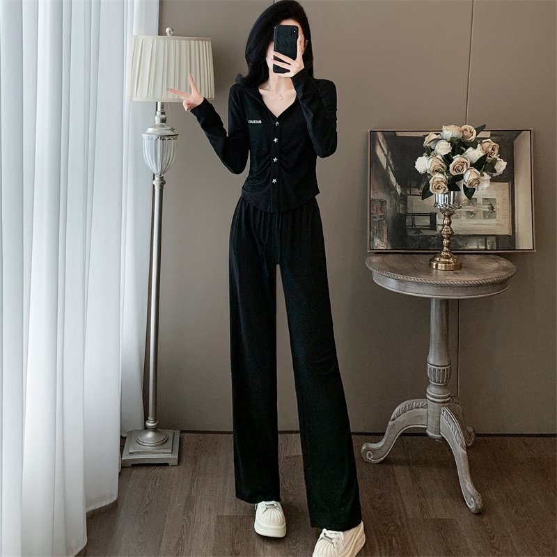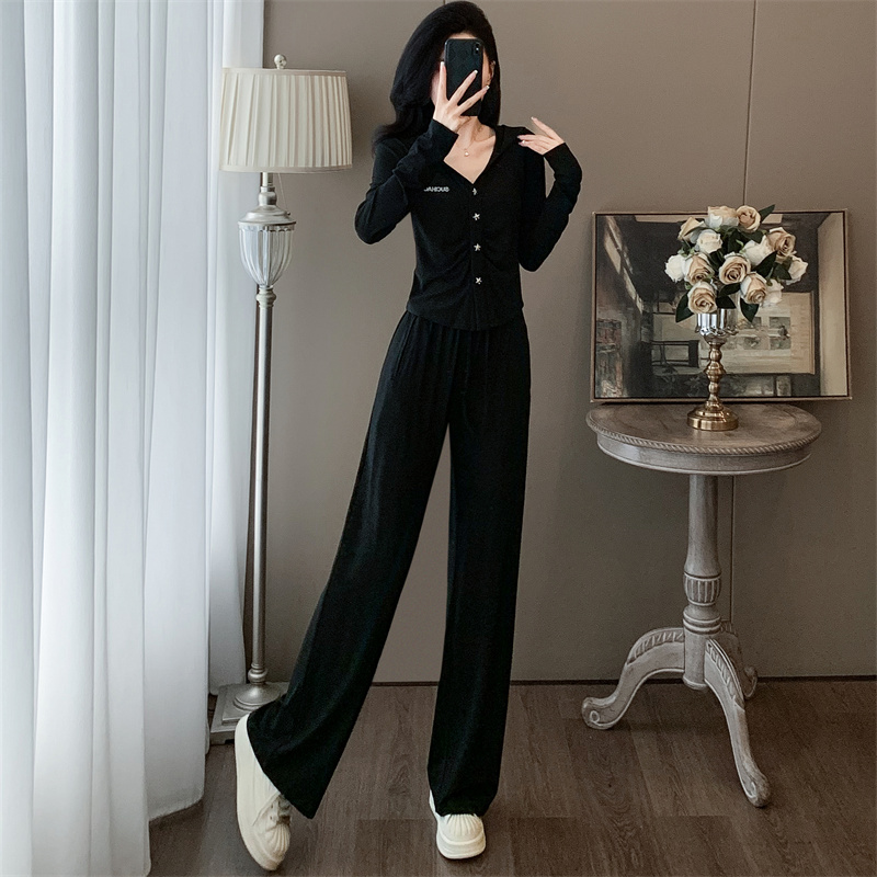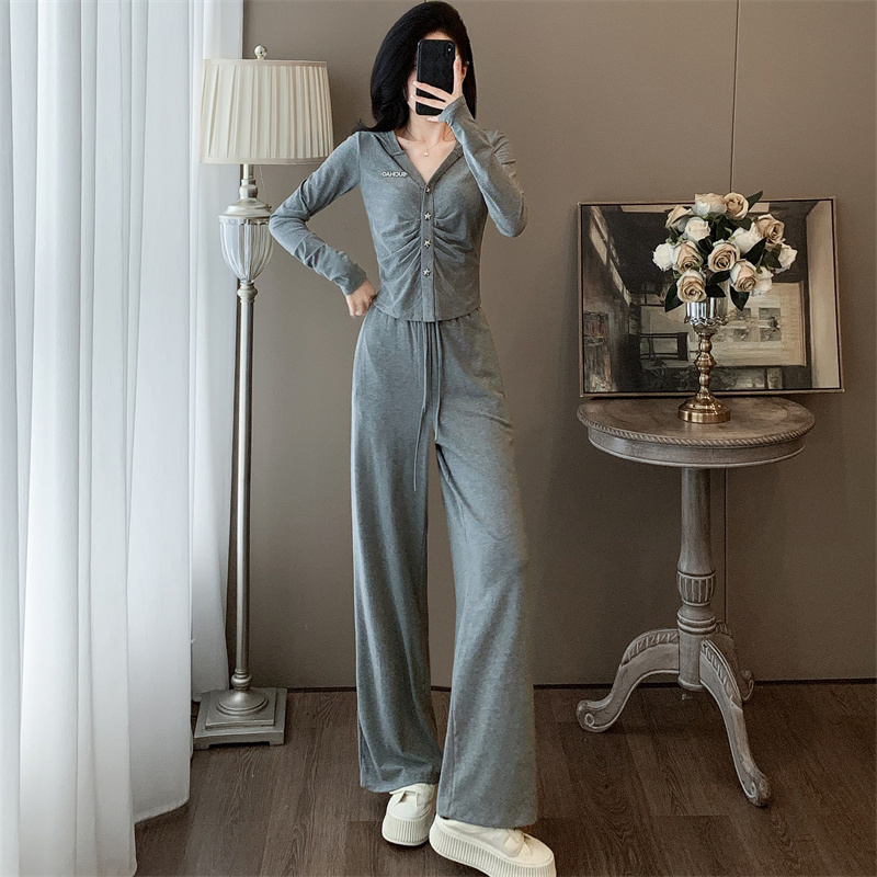 运动休闲套装女2025年新款减龄连帽卫衣阔腿裤春秋温柔穿搭两件套