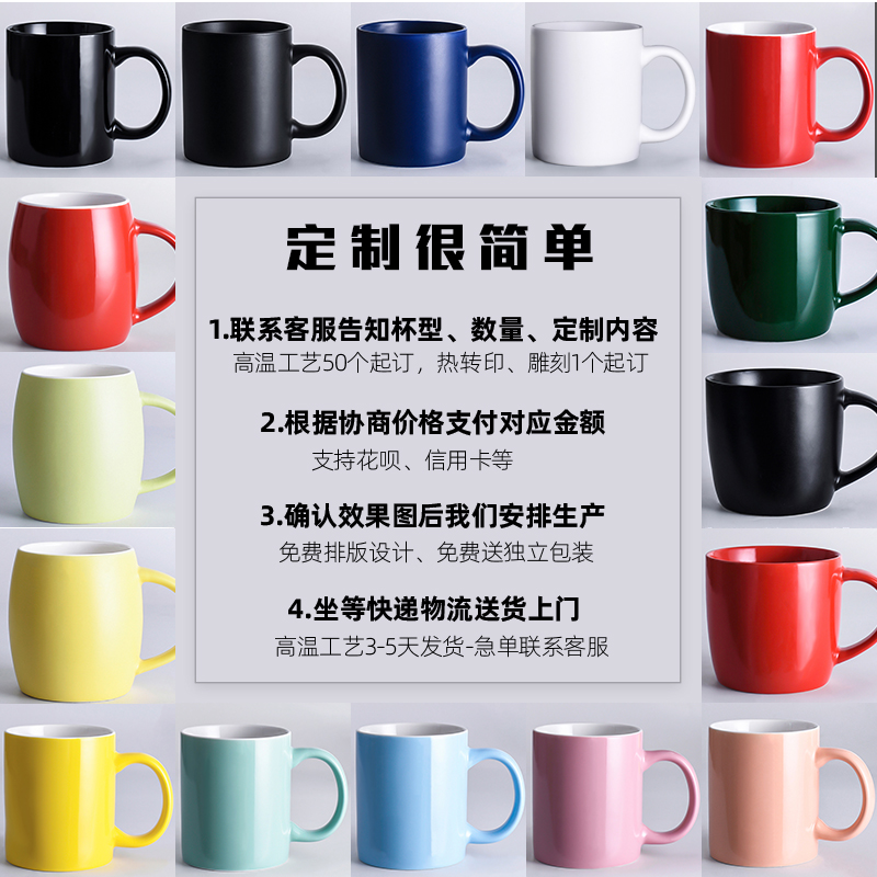 纯色简约磨砂马克杯子陶瓷杯 定制logo水杯广告杯加厚矮胖大容量