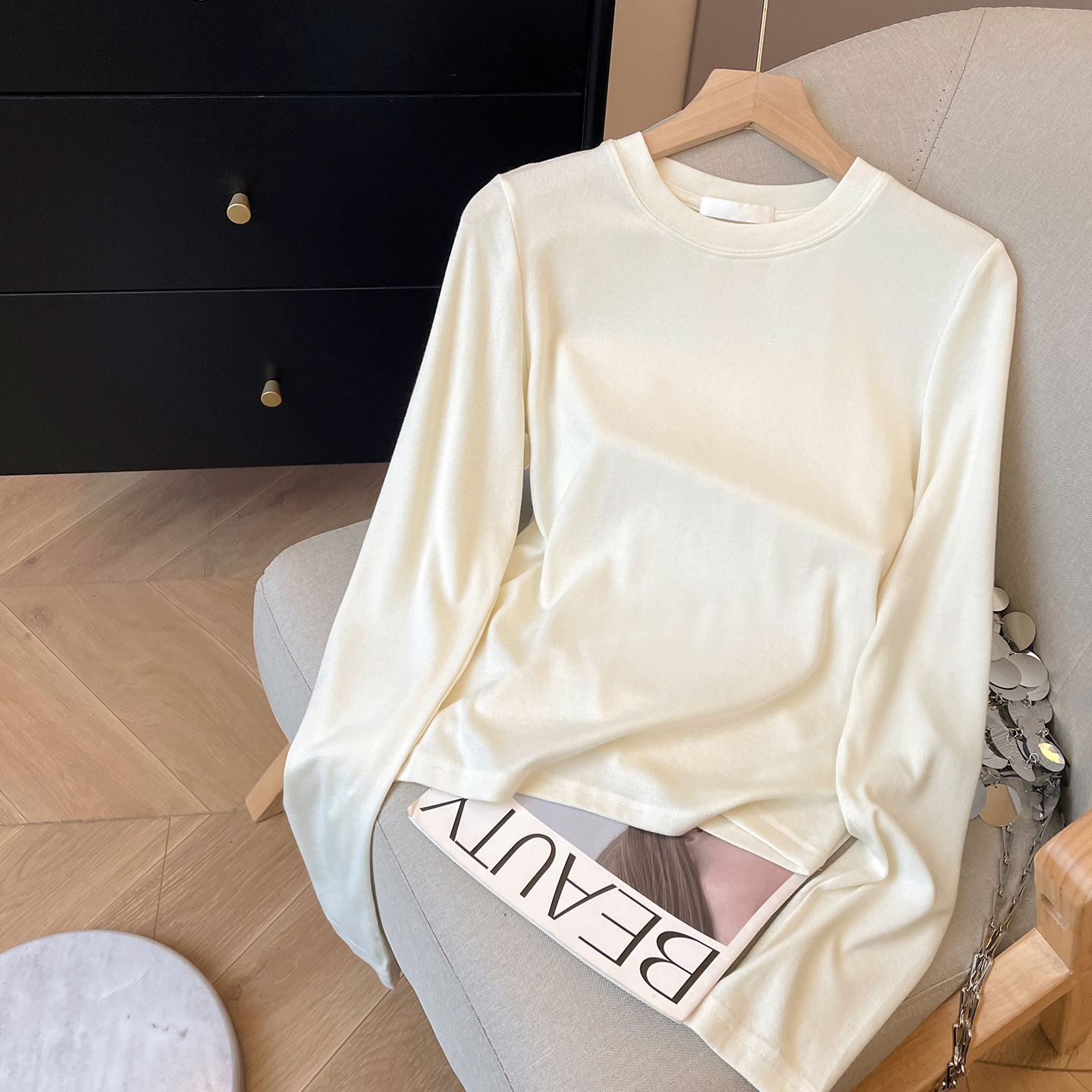 小C家纯色长袖打底衫女2025新款早秋内搭修身圆领正肩T恤短款上衣
