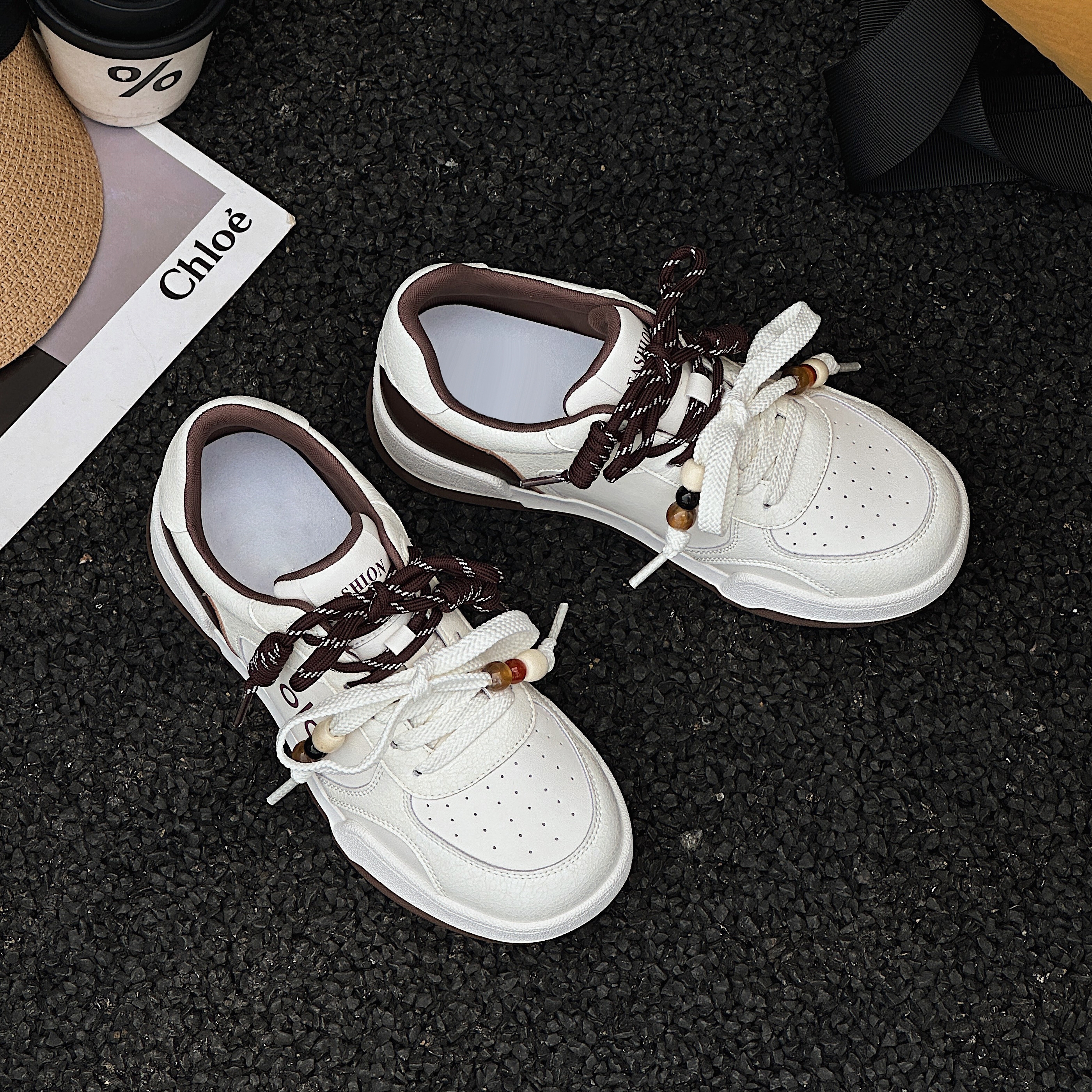 她菲娅2025秋新款韩版真皮厚底板鞋女百搭休闲运动小白鞋女8193