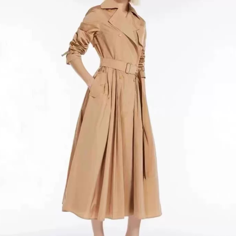 A712风衣 秋款淑女通勤翻领双排扣系带收腰中长款外套