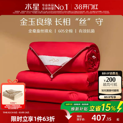 水星家纺婚庆全棉100%桑蚕丝被子