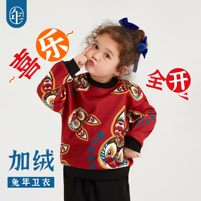 年衣童装女童卫衣秋冬2025新款男童长袖T恤儿童套头加绒上衣亲子