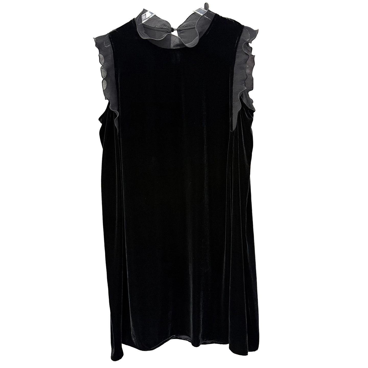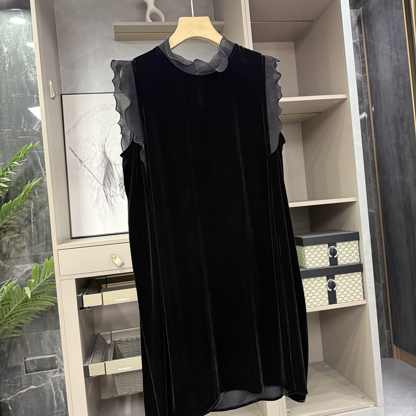 木耳边真丝丝绒无袖背心连衣裙
