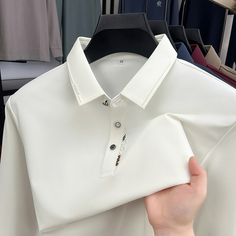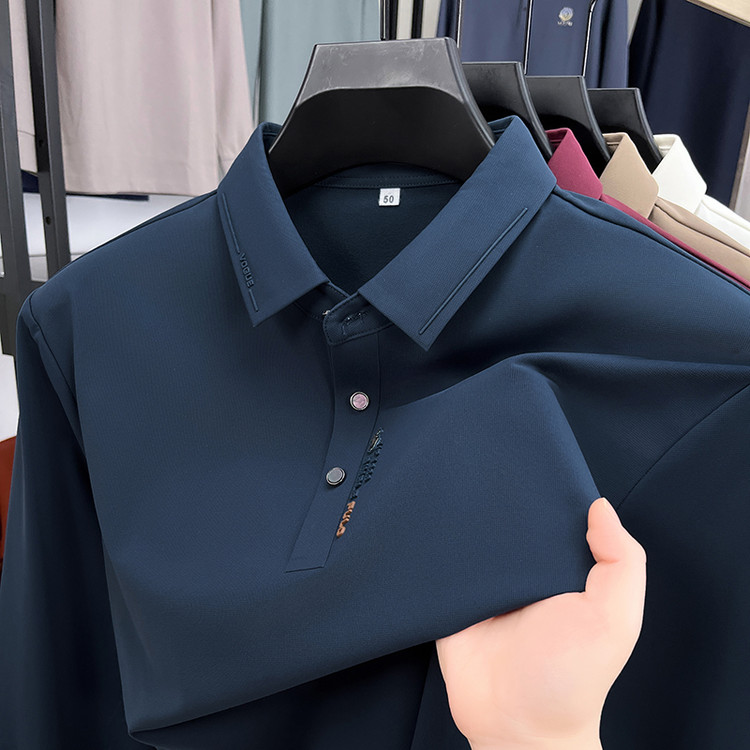 2025新款中老年爸爸装翻领长袖T恤春秋男士上衣纯色百搭polos衫潮