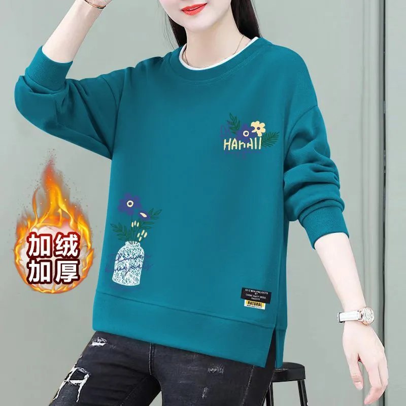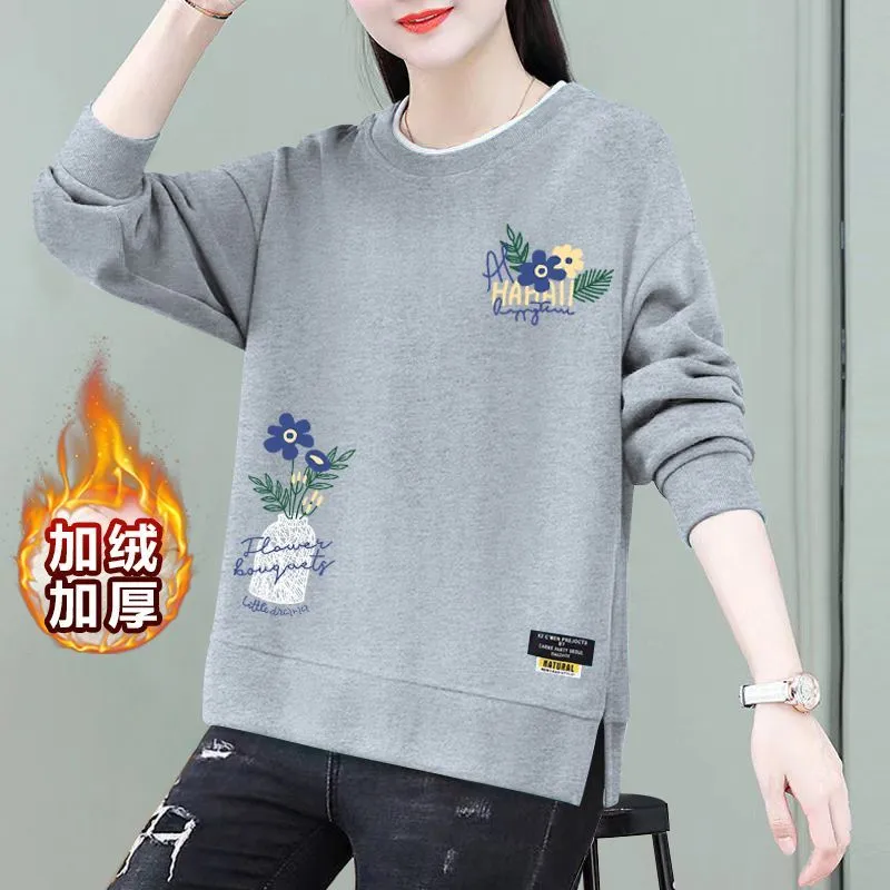 啄木鸟加绒加厚卫衣女2025冬季新款假两件宽松高档妈妈装打底上衣