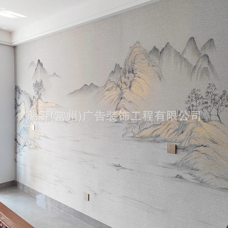 加厚竹节麻无缝墙布高精密壁布简约现代客厅卧室家装灰蓝色背景