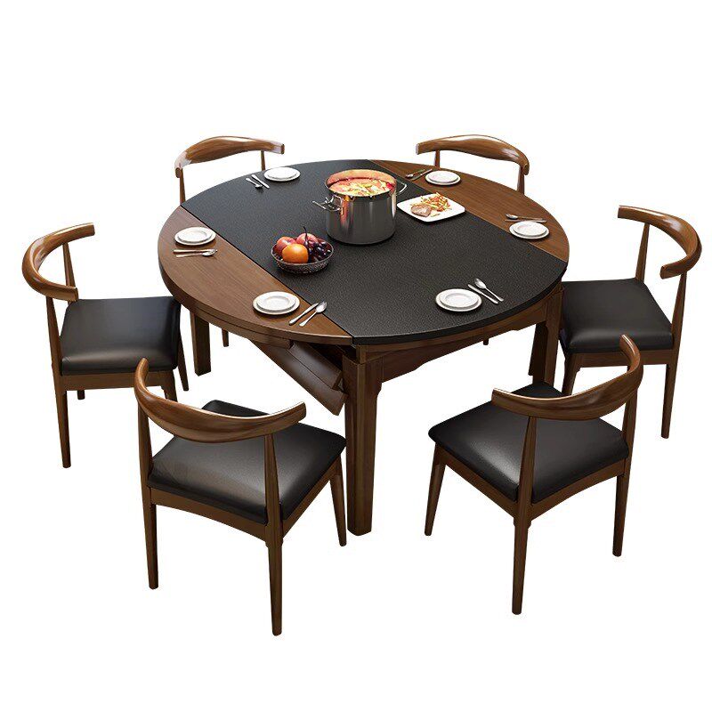 火烧石全实木餐桌椅伸缩变圆桌家用小户型带电磁炉饭桌