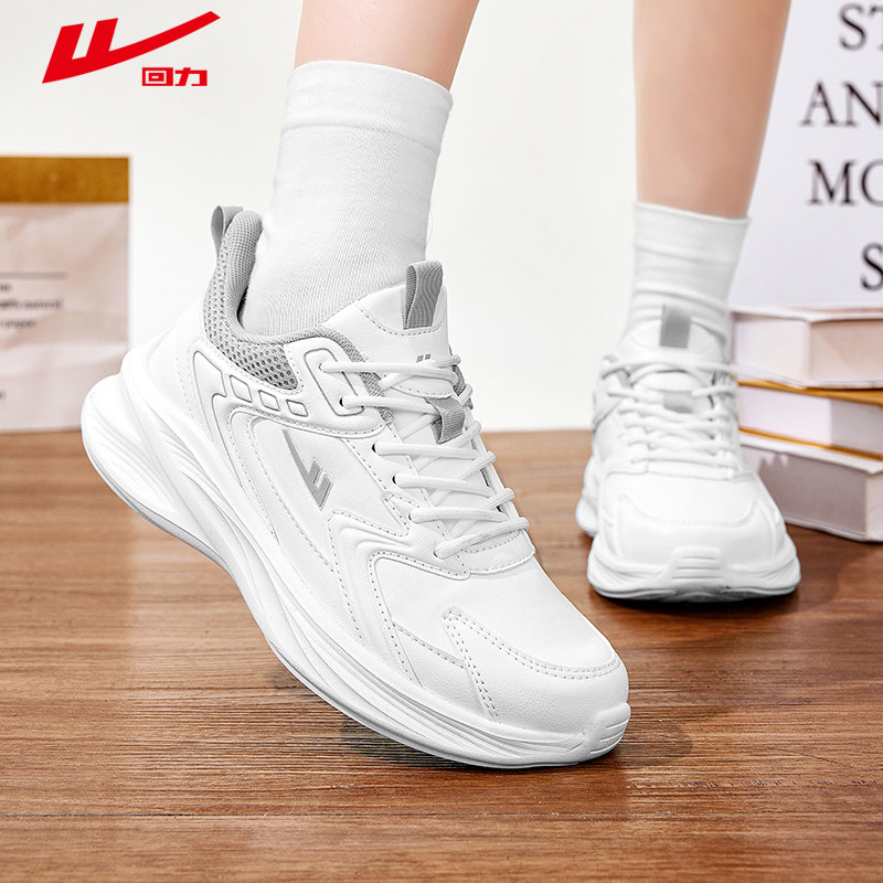 回力男鞋白色运动鞋男款春秋季学生皮面小白鞋轻便软底休闲跑步鞋