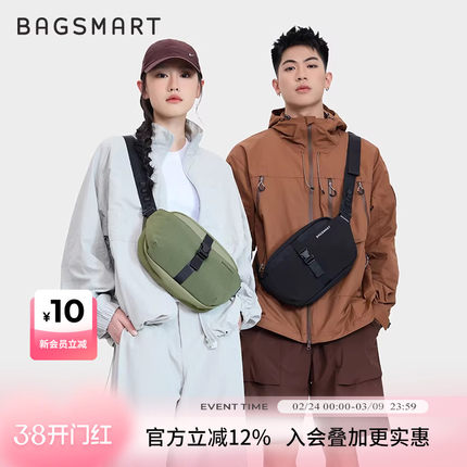 bagsmart斜挎包男士胸包机能单肩包女潮牌挎包新款运动背包腰包