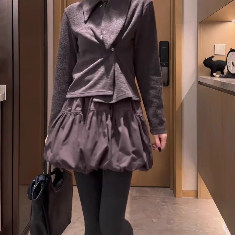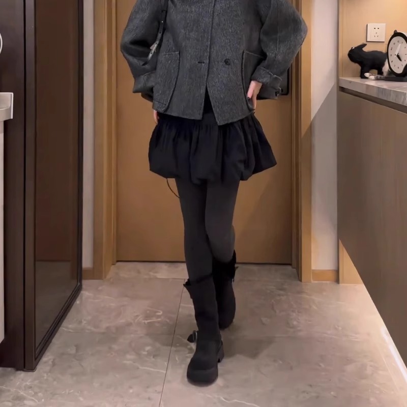 欧货加厚流行花苞蓬蓬裙2025冬季新款款梨形高腰显瘦宽松半身裙子