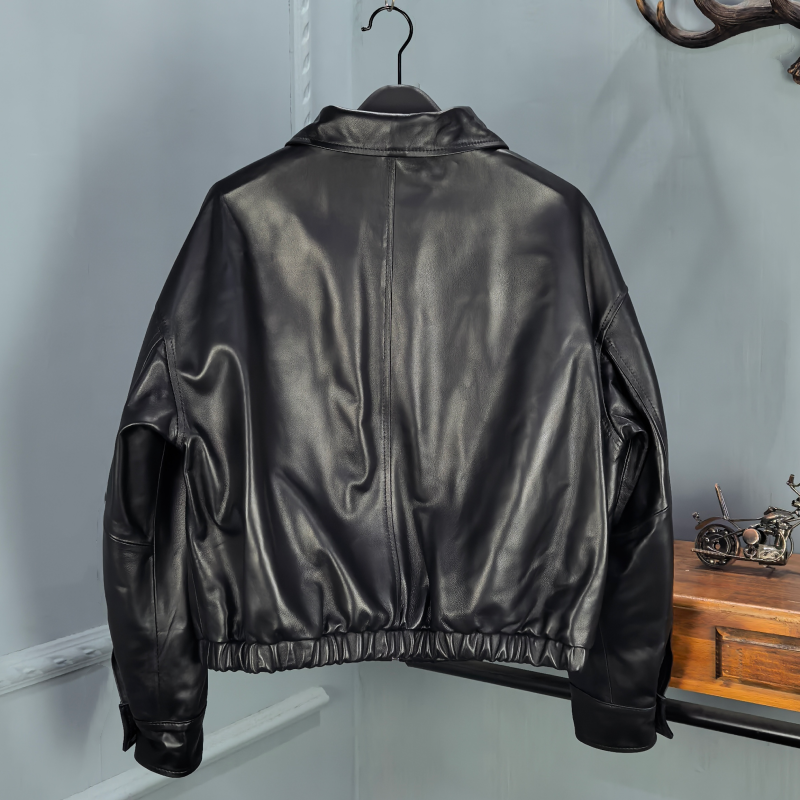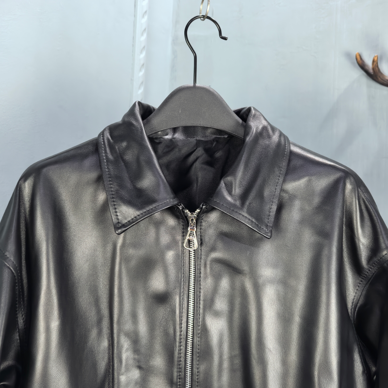 2025秋季新款真皮皮衣女绵羊皮方领短款夹克外套时尚减龄