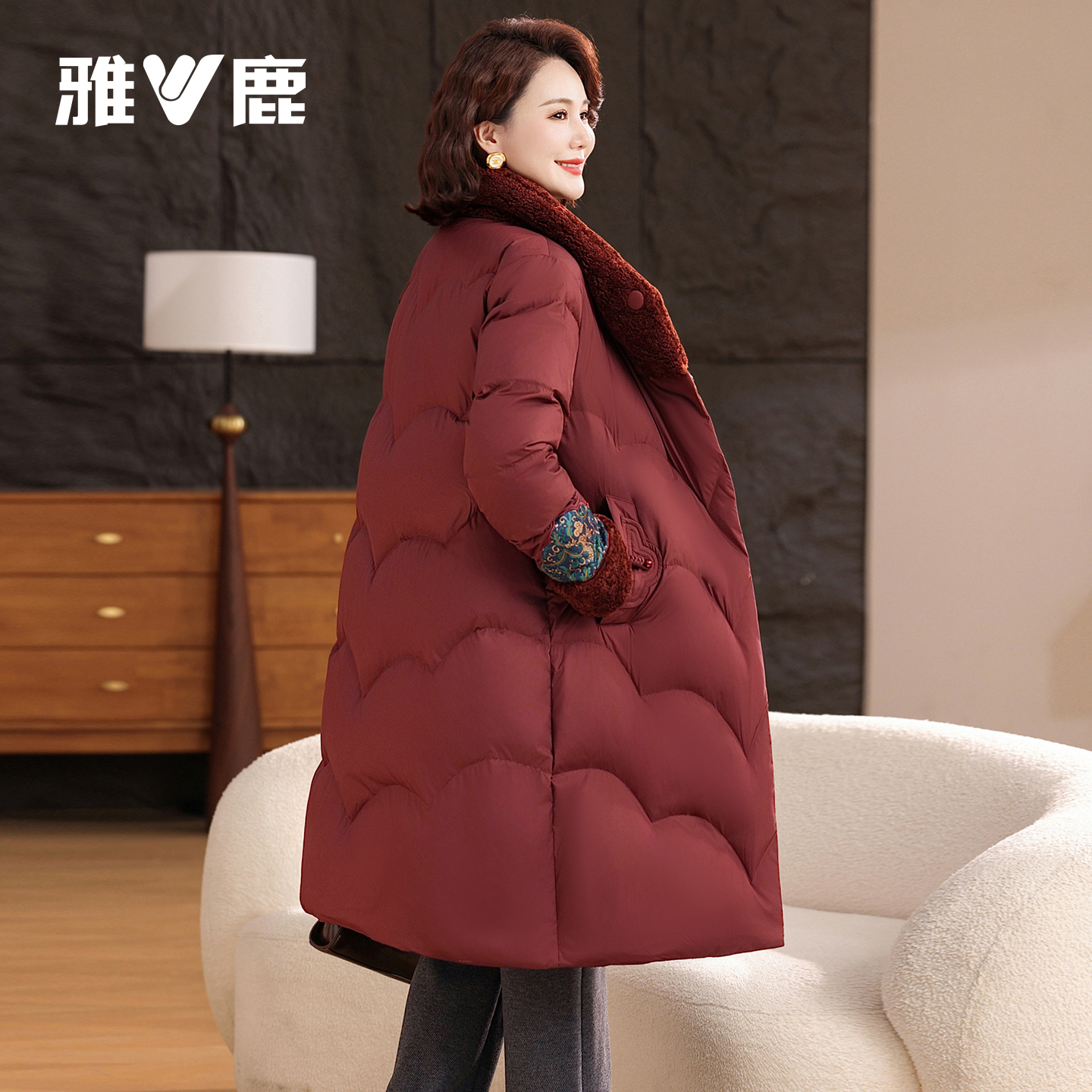 雅鹿长款妈妈羽绒服外套