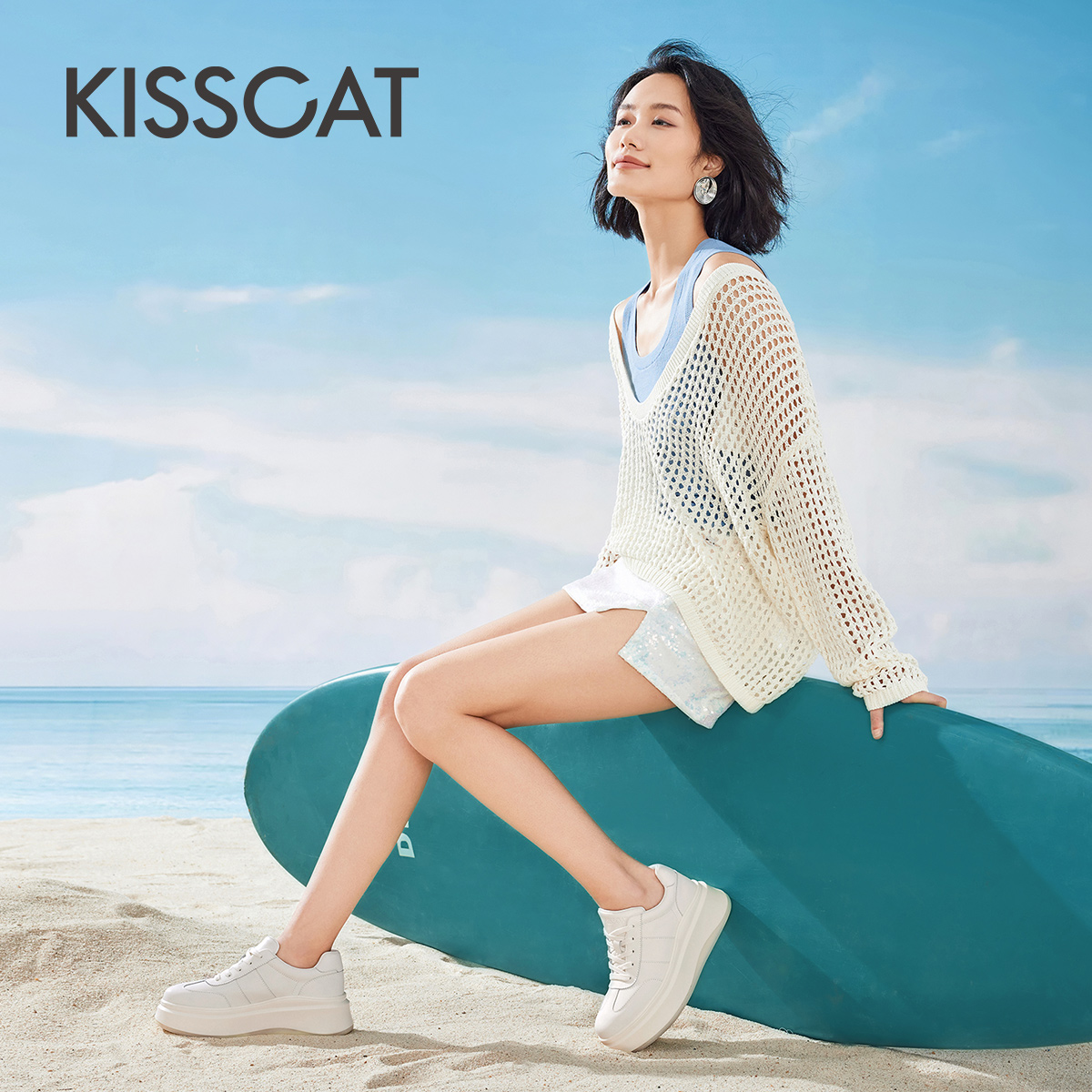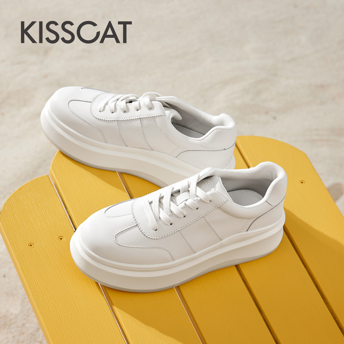 [秦岚美洋同款]KISSCAT接吻猫饼干德训鞋厚底增高阿甘小白鞋