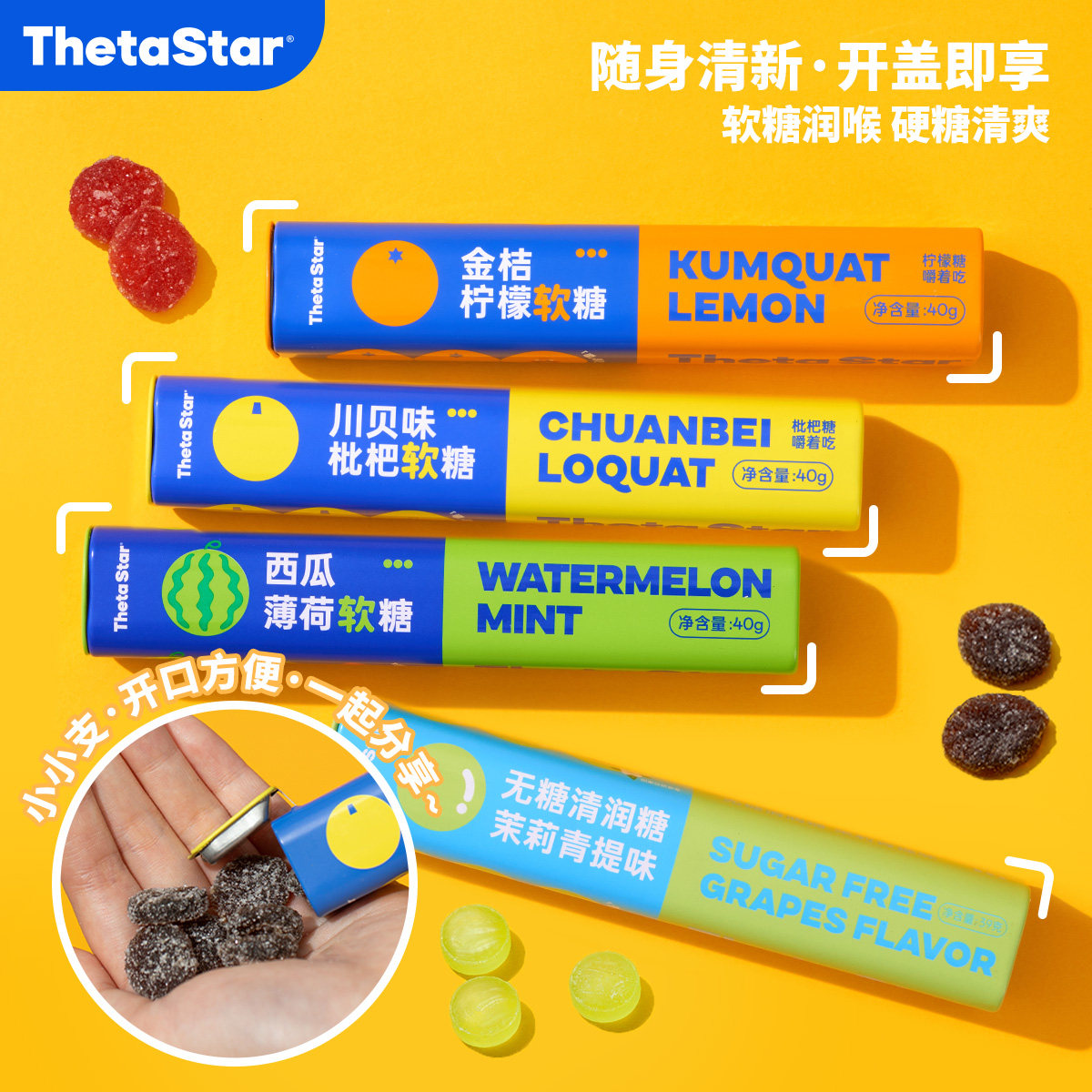 西塔星球/川贝味枇杷金桔柠檬西瓜薄荷草本软糖清新口气便携装