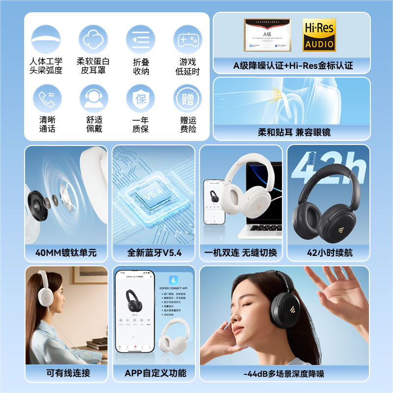 漫步者Lark Pro头戴式无线蓝牙耳机新款主动降噪耳麦运动跑步游戏