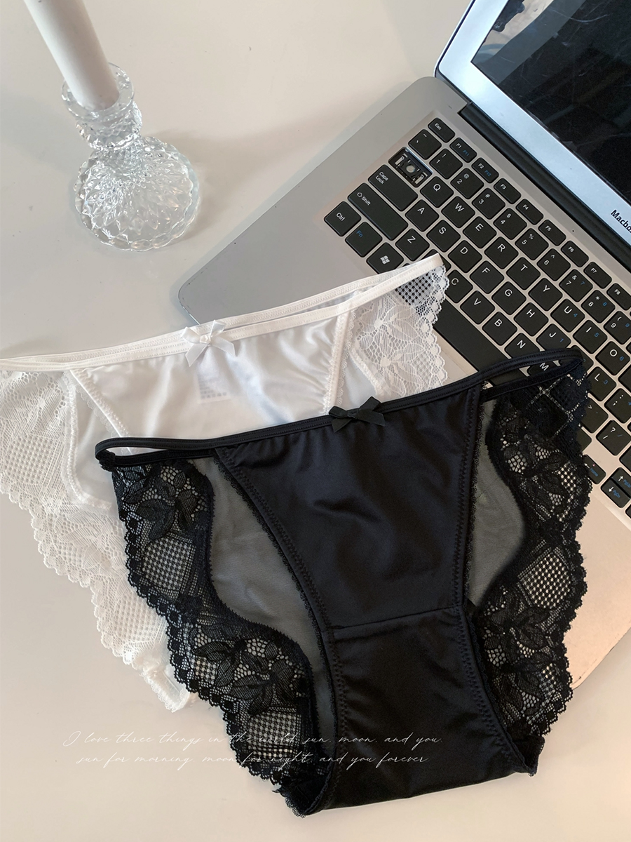 缎面一根带性感低腰裆纯棉内裤女夏季薄款蕾丝半包臀2025新款性感
