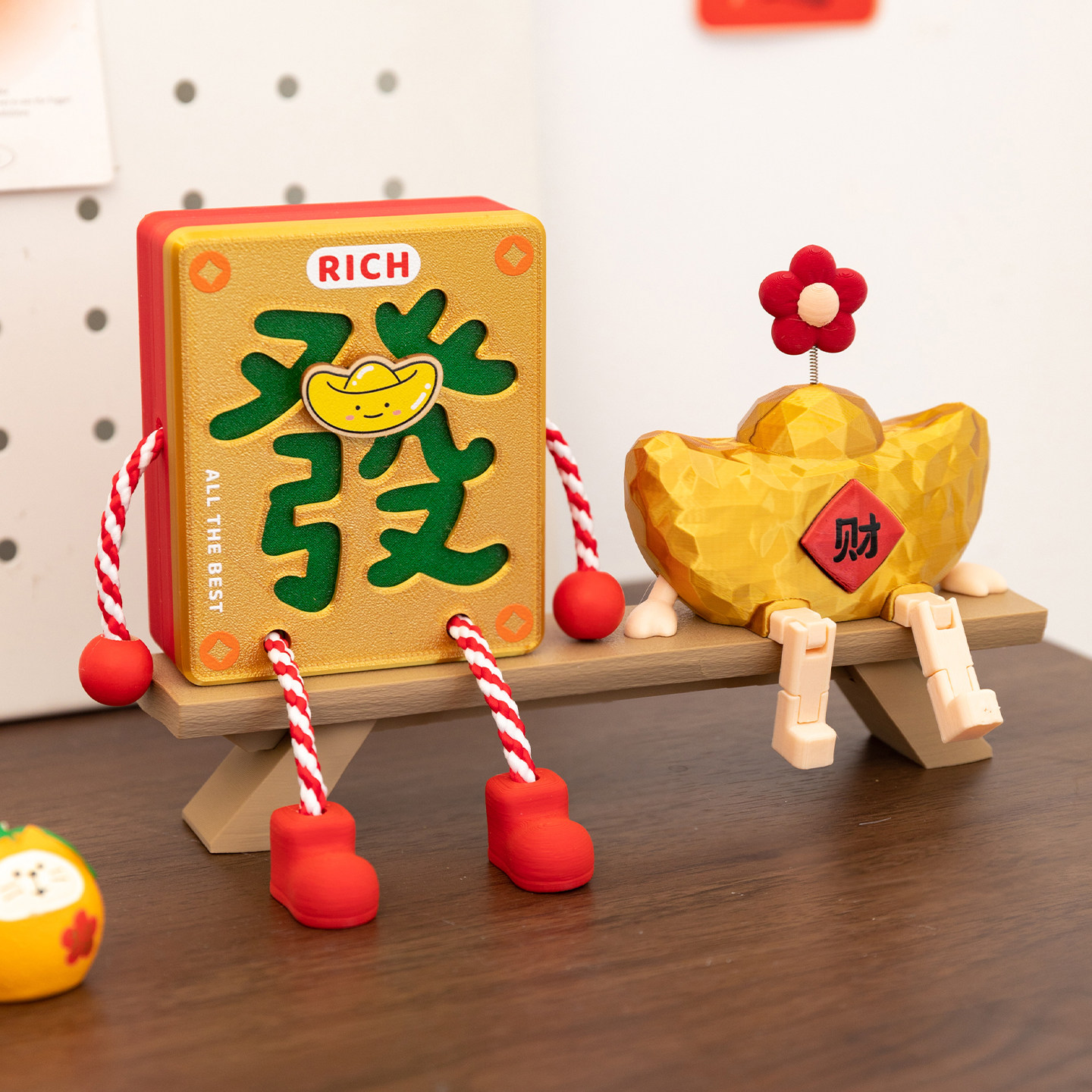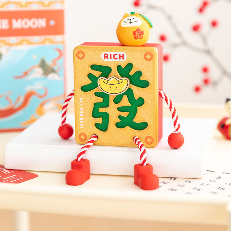 萌趣发财麻将文字小摆件小众礼物
