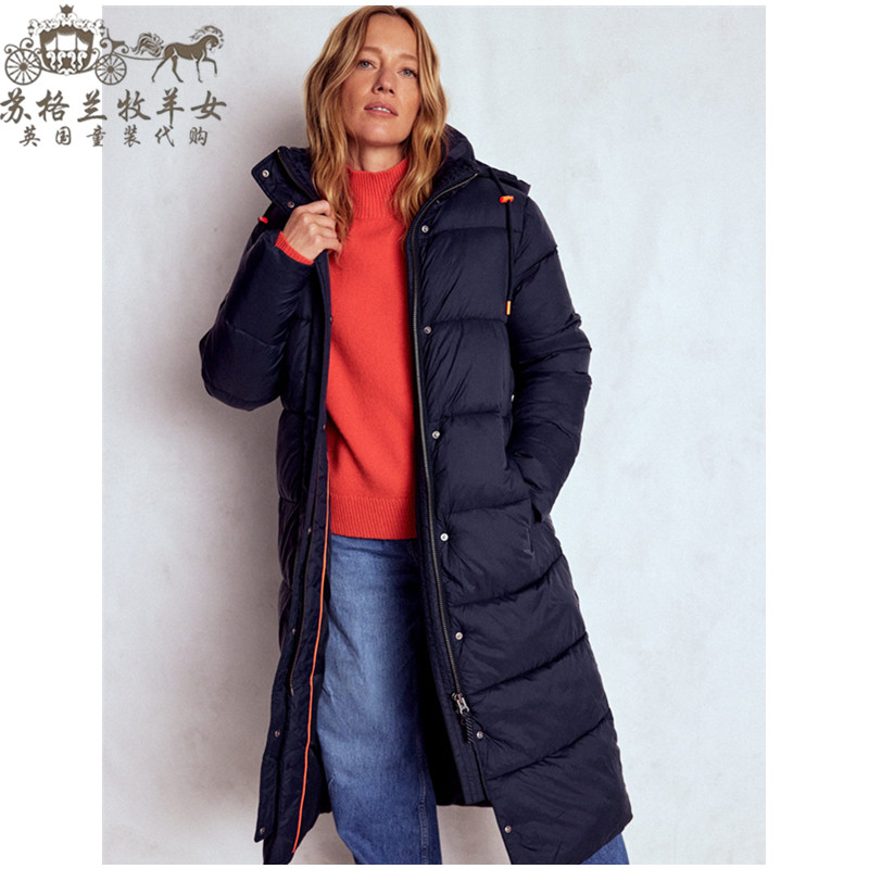 英国Boden代购 女装25秋冬新款 英伦蓝色连帽中长款羽绒棉服外套