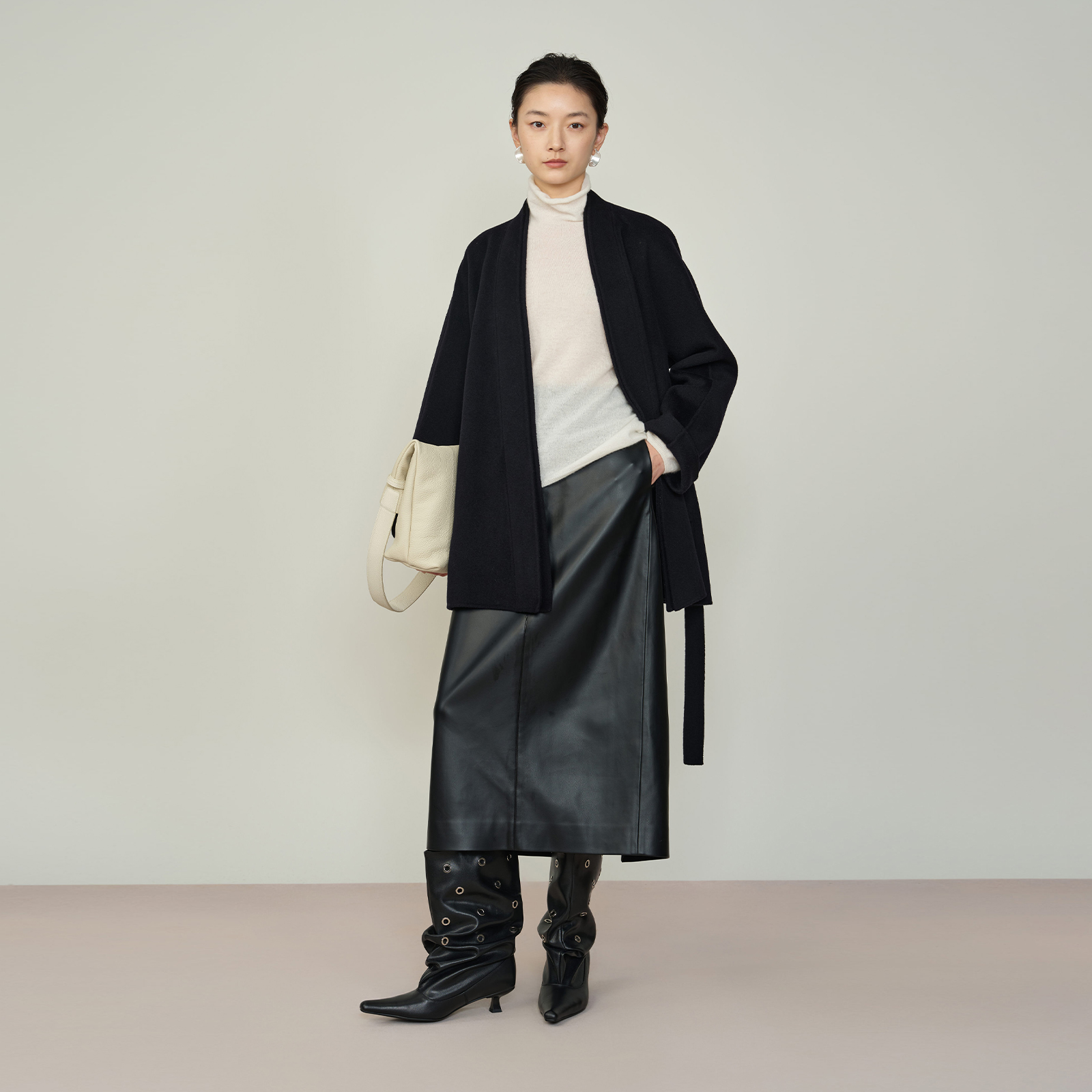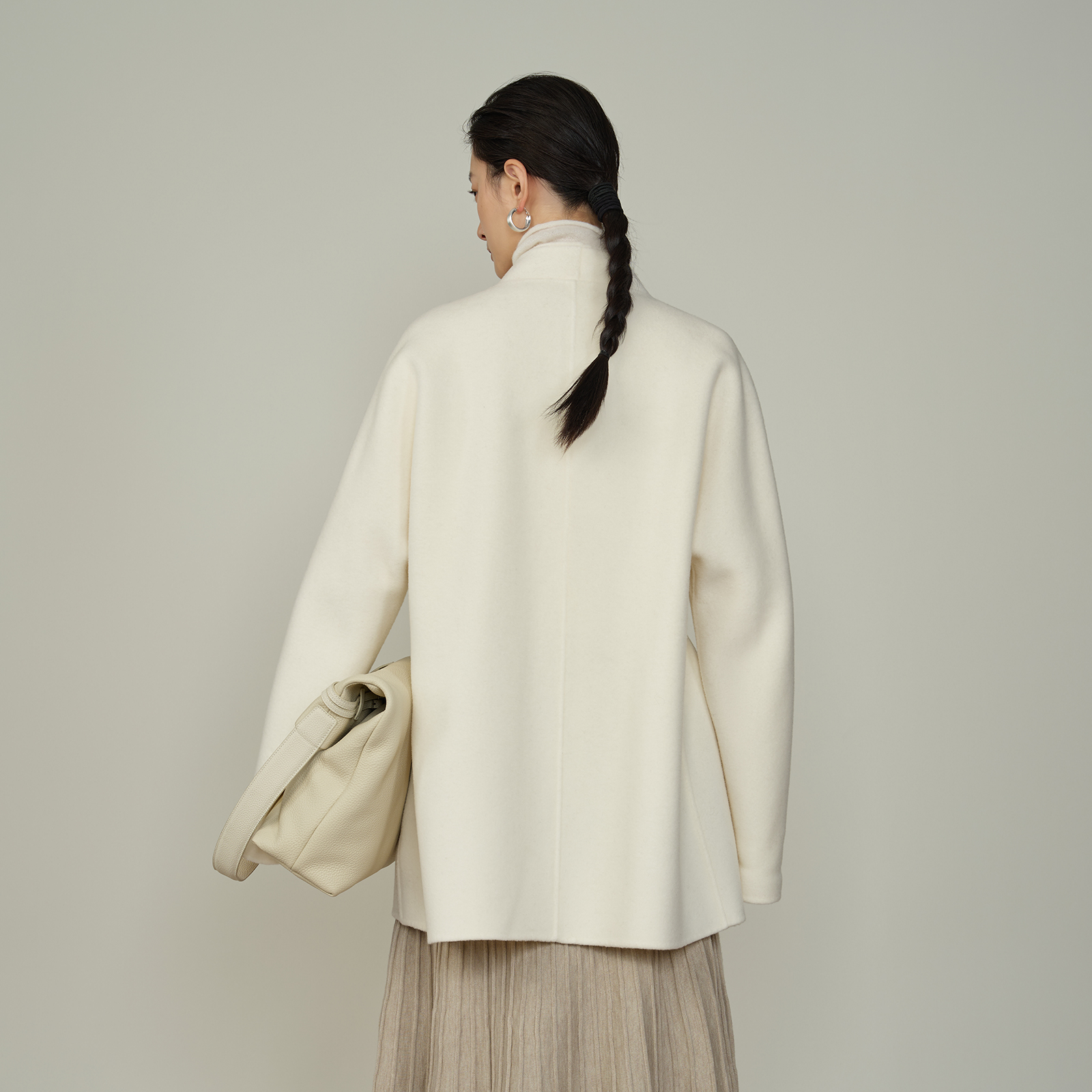 AS毛呢外套女25冬季新款简洁宽松中长款中式双层门襟休闲保暖大衣