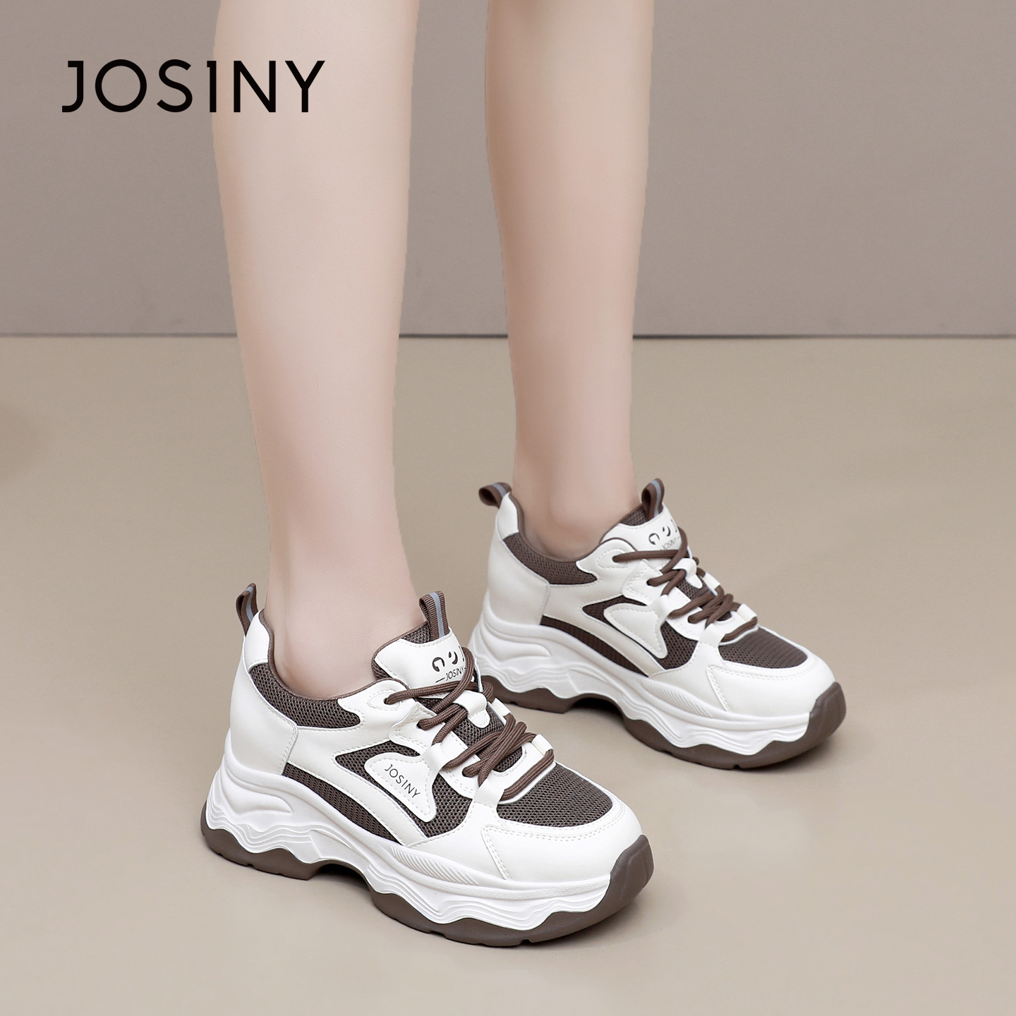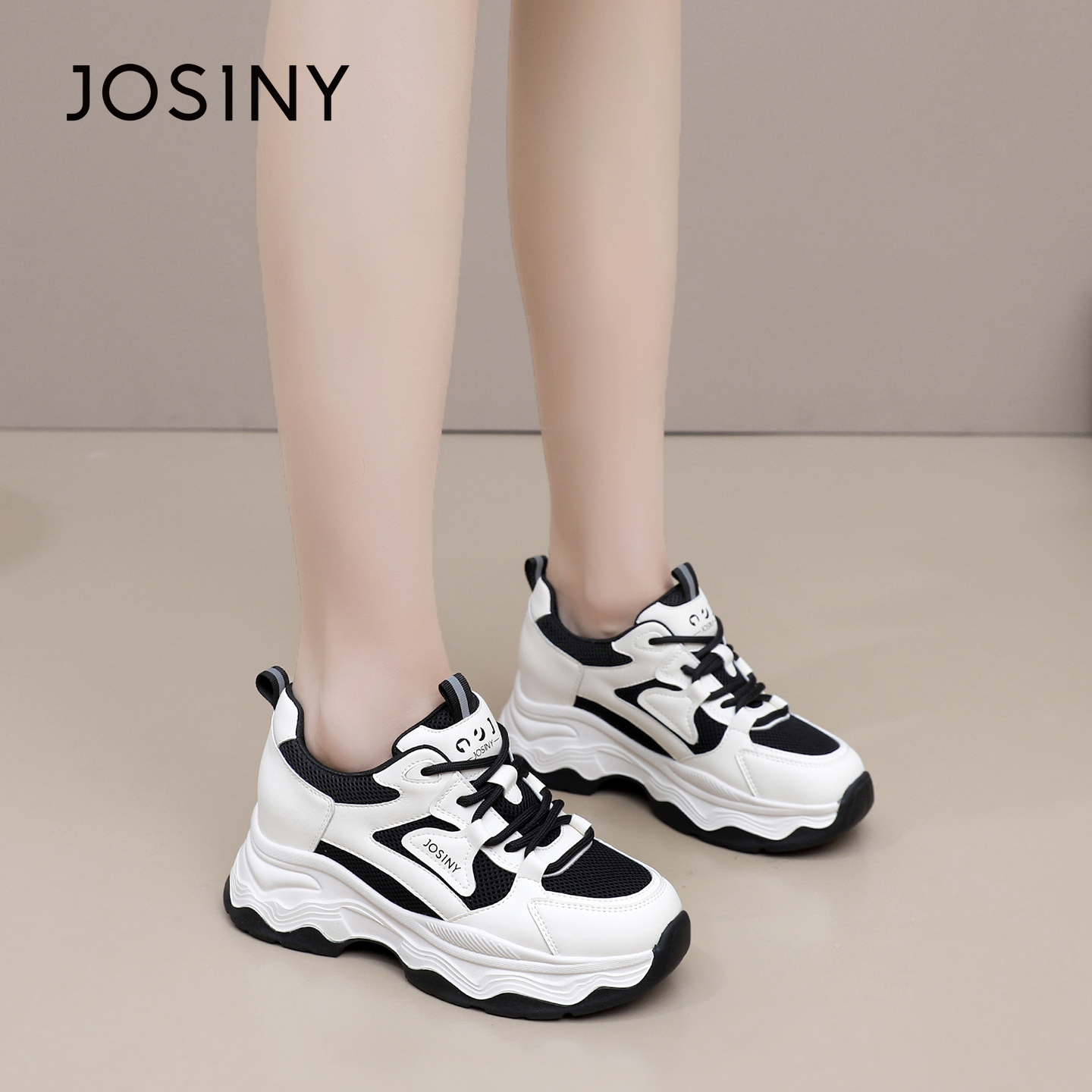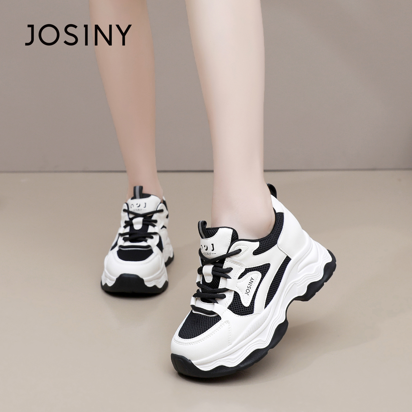 卓诗尼2025秋季新款舒适休闲鞋时尚厚底运动鞋潮流百搭透气老爹鞋