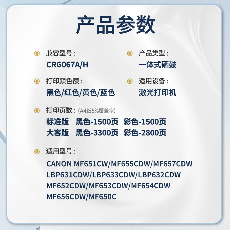 适用于佳能CRG-067硒鼓Canon MF655Cdw/MF654Cdw MF650C MF651Cw/657/656Cdw粉盒LBP631Cw/633Cdw CRG067墨盒
