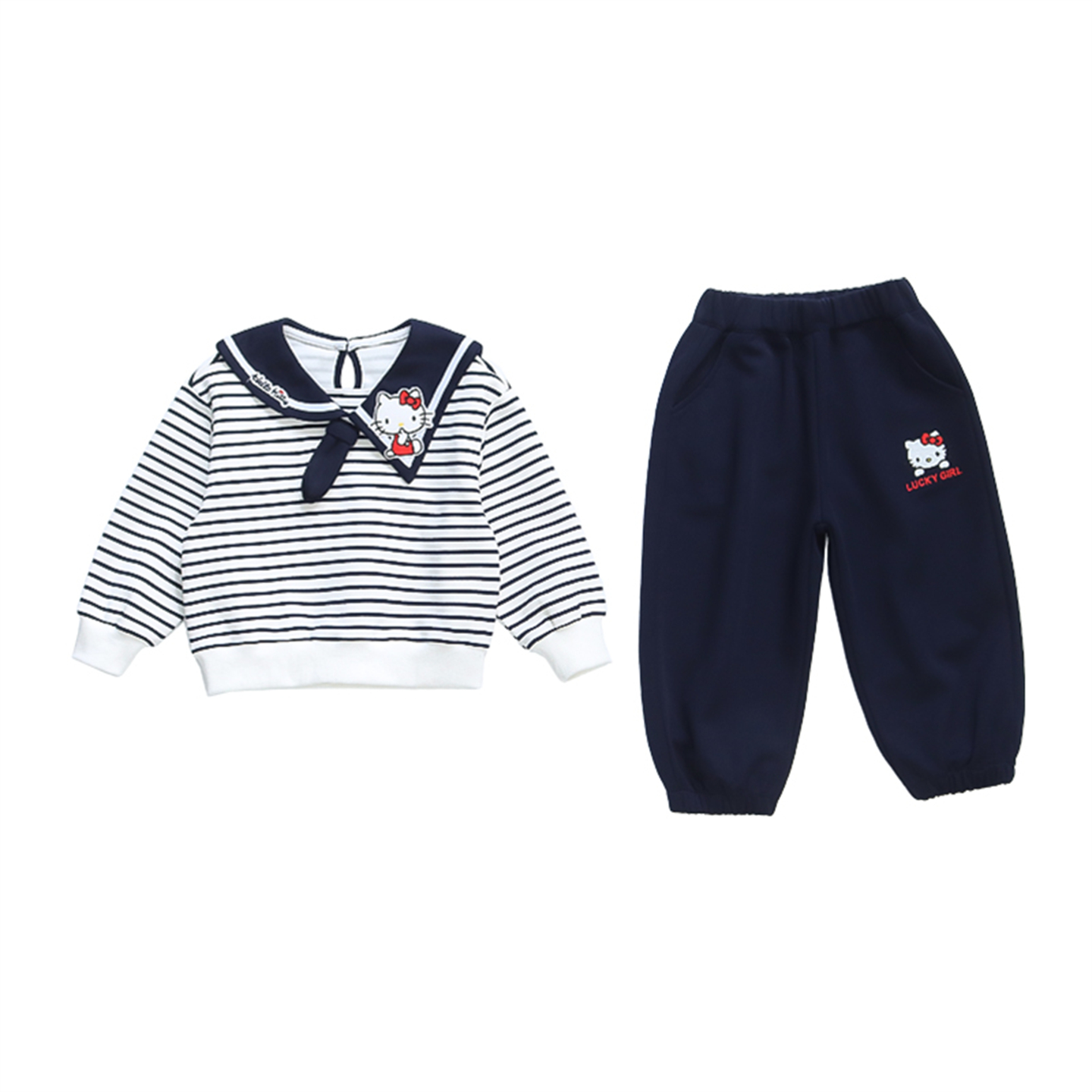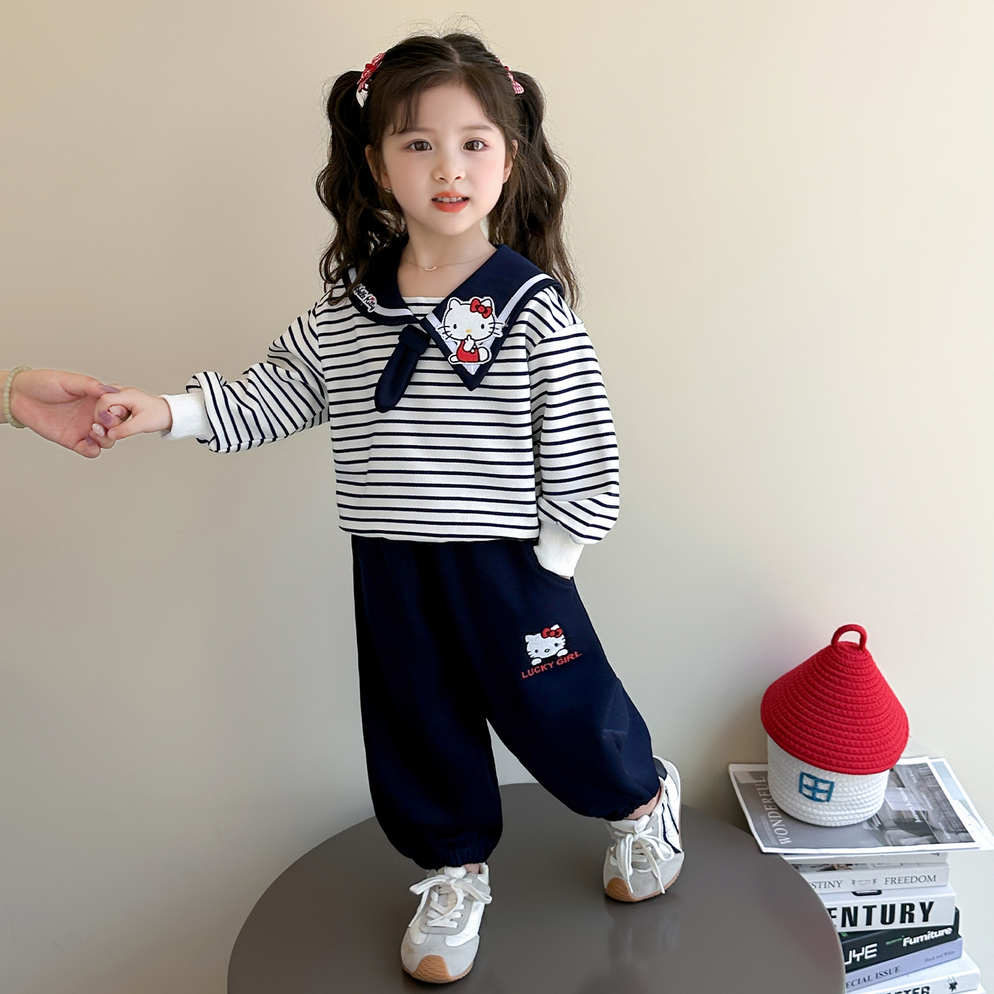 女童套装春秋装2025新款儿童洋气条纹海军领卫衣裤子女宝宝两件套