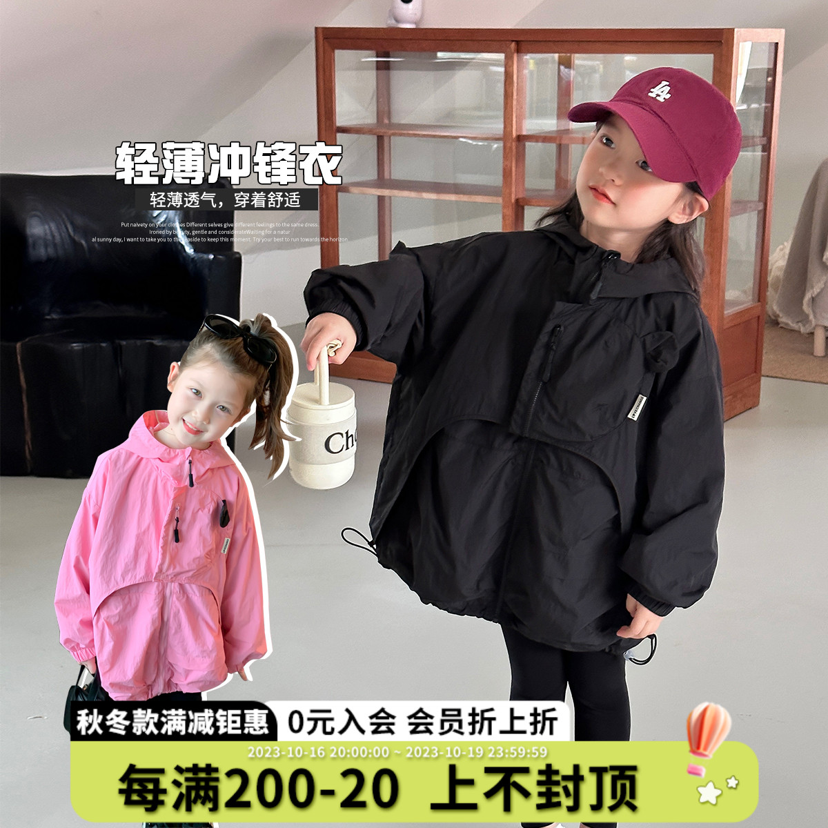 沫沫家童装春秋女童上衣外套2023秋季新款女童风衣宝宝连帽冲锋衣