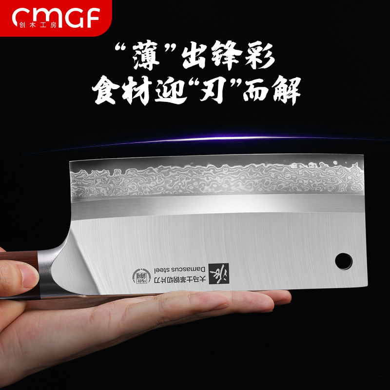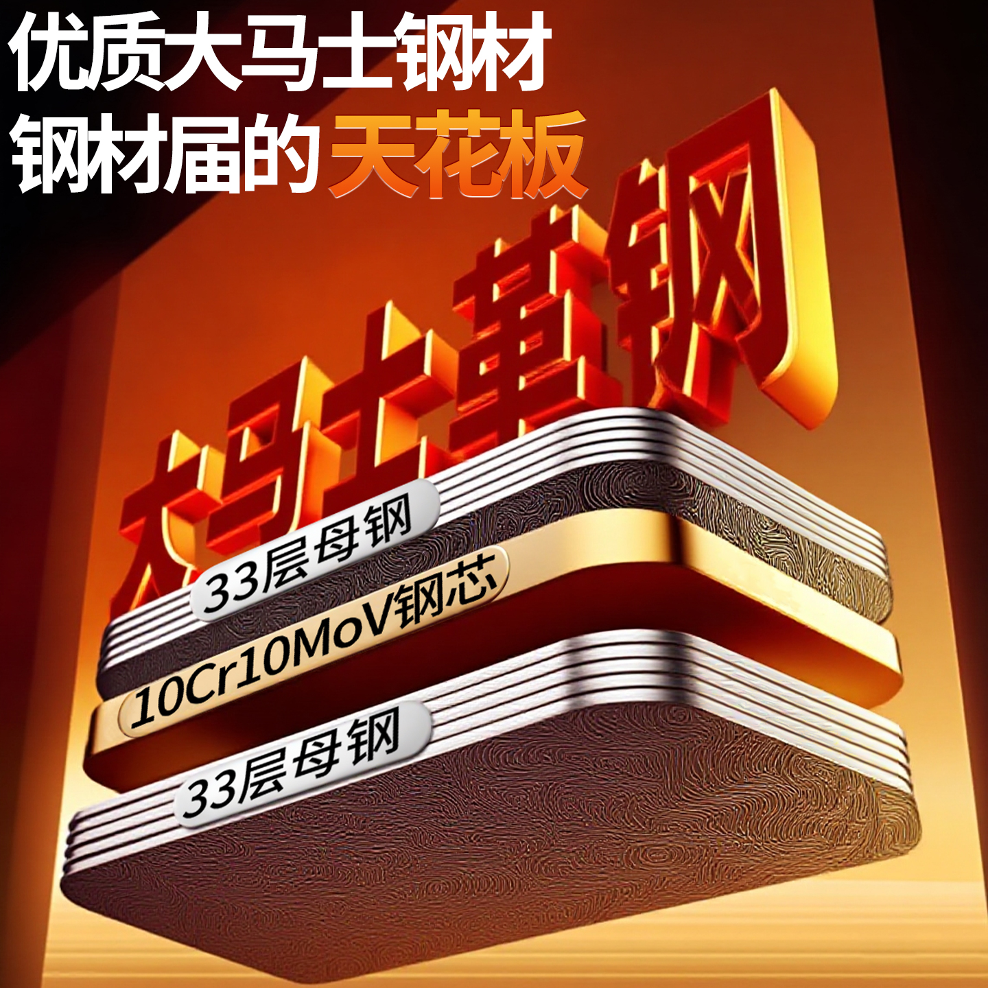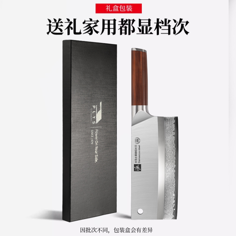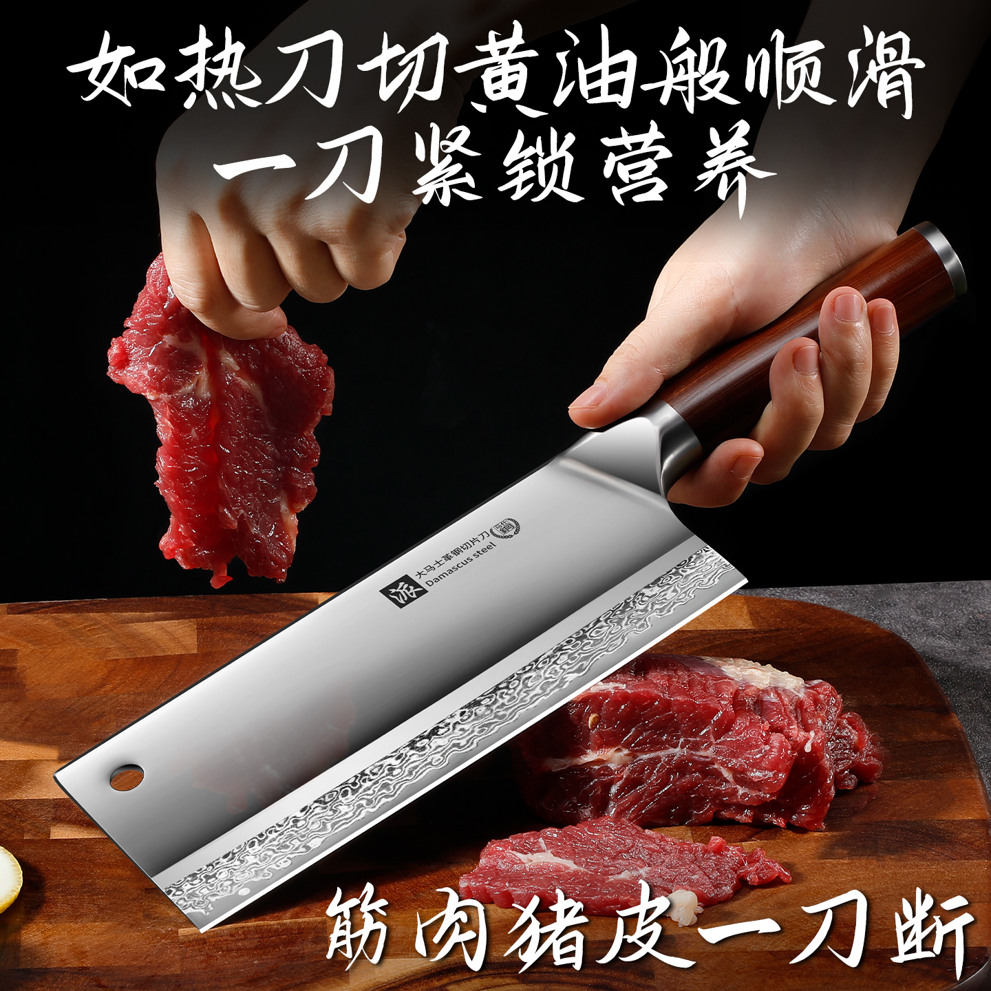 菜刀家用切片刀大马士革钢厨房专用锋利厨刀水果刀菜板二合一套装