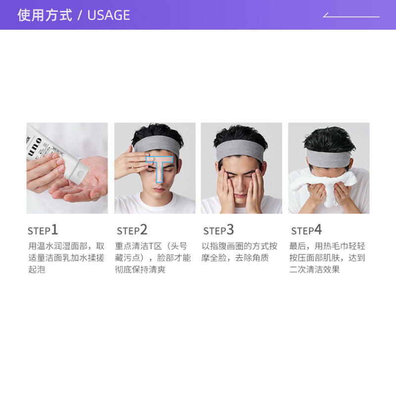 【自营】UNO吾诺男士洗面奶130g保湿洁面膏清洁去黑头洗颜洁面乳