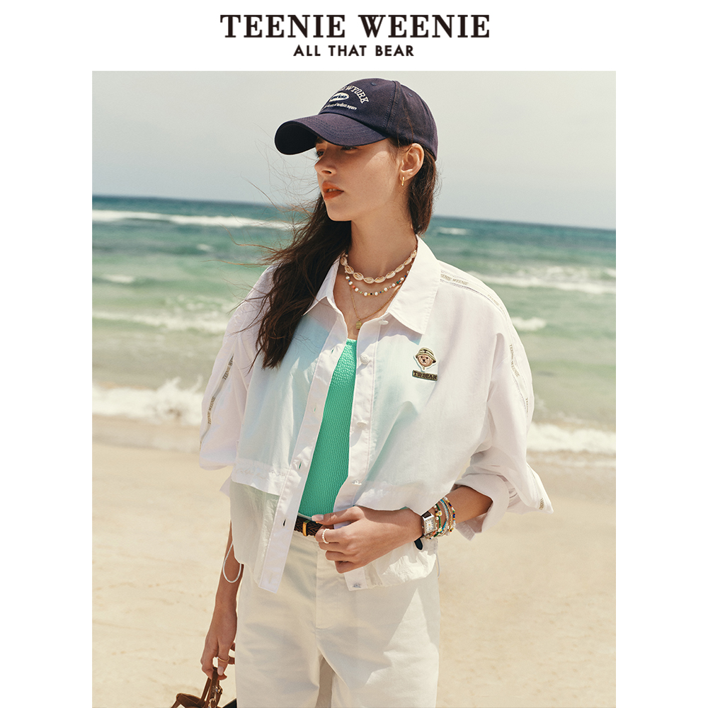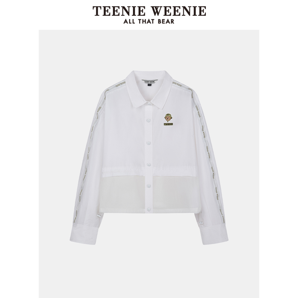 TeenieWeenie小熊奥莱女装设计感收腰长袖衬衫清冷白色系穿搭