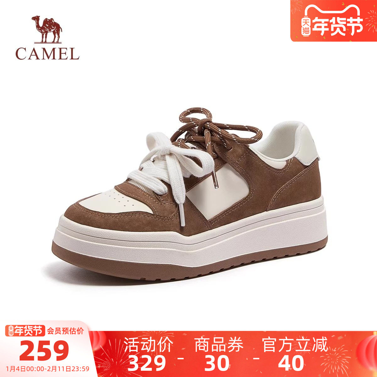 骆驼女鞋2026早春新款百搭厚底户外运动休闲鞋面包鞋休闲板鞋女款